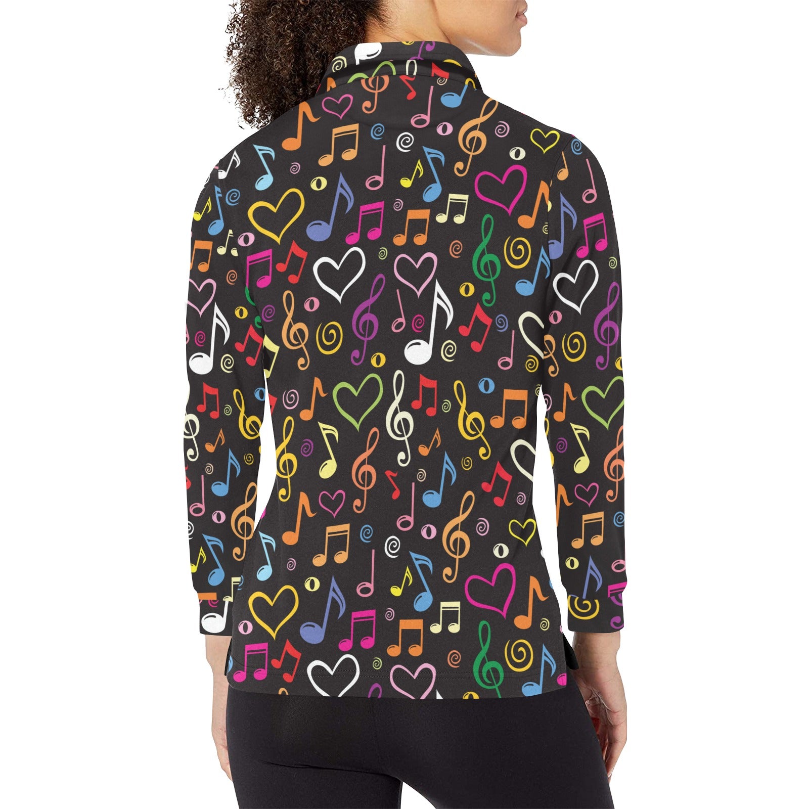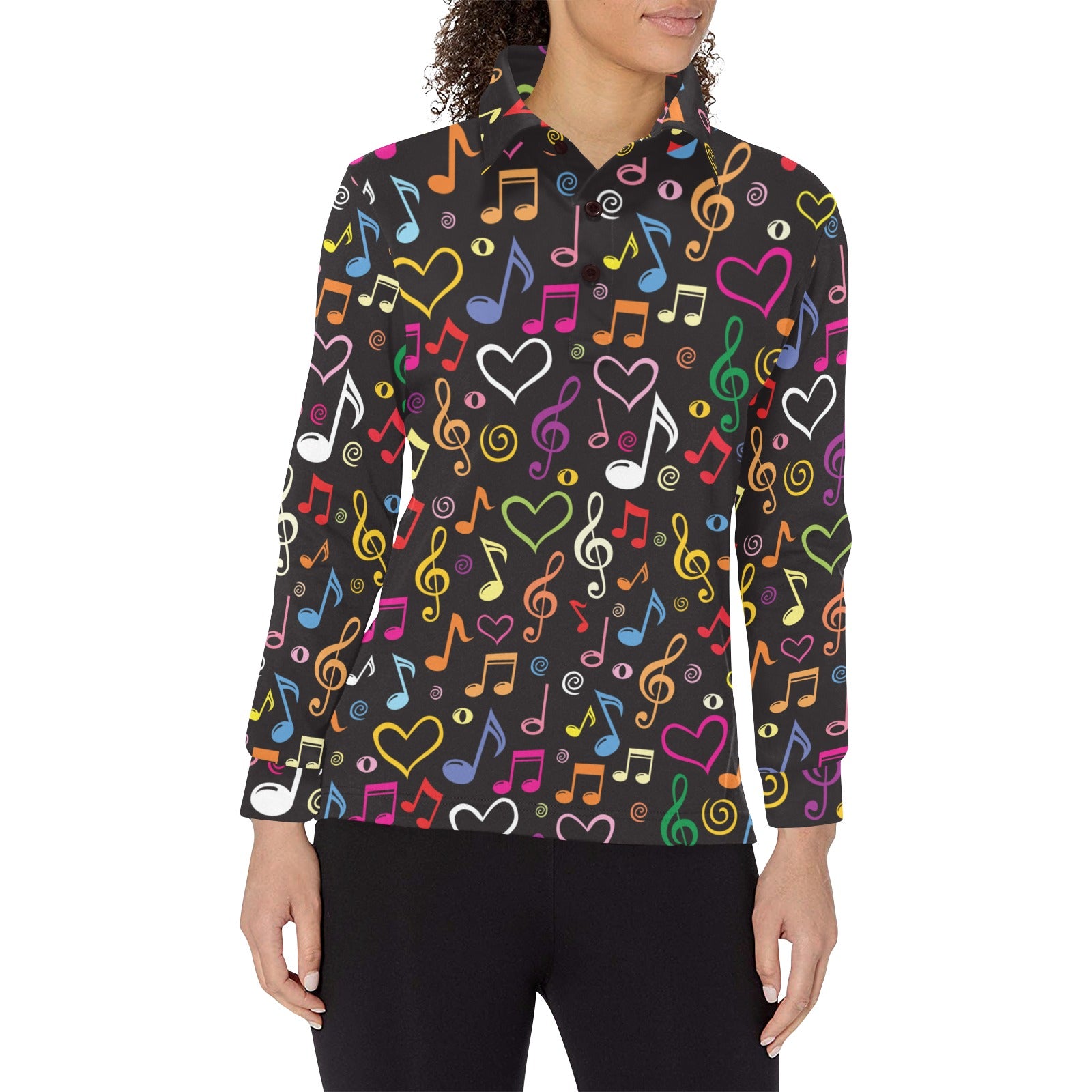 Music Notes Pattern Print Design 02 Women's Long Sleeve Polo Shirt