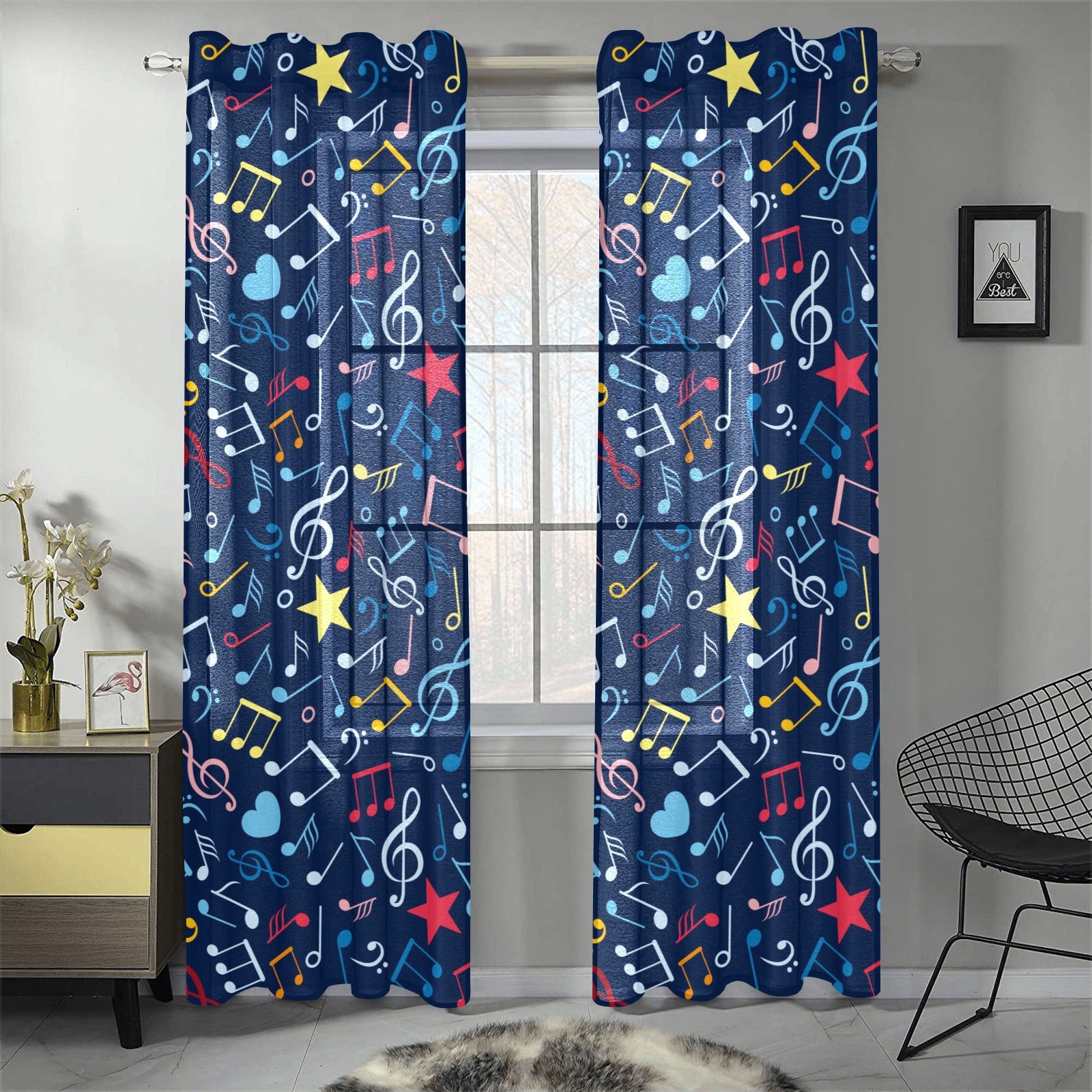 Music Notes Pattern Print Design 03 Gauze Curtain