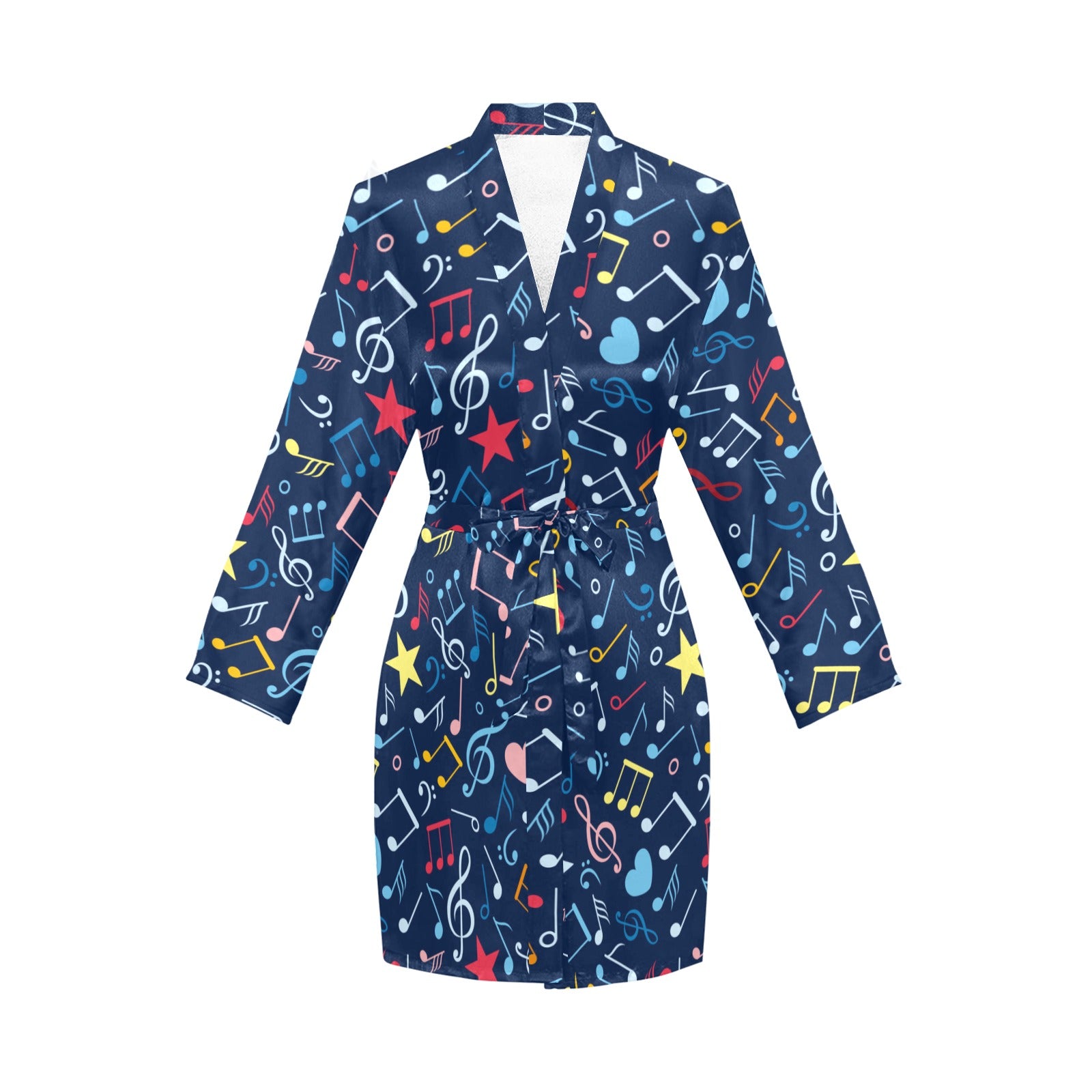 Music Notes Pattern Print Design 03 Women's Long Sleeve Belted Night Robe