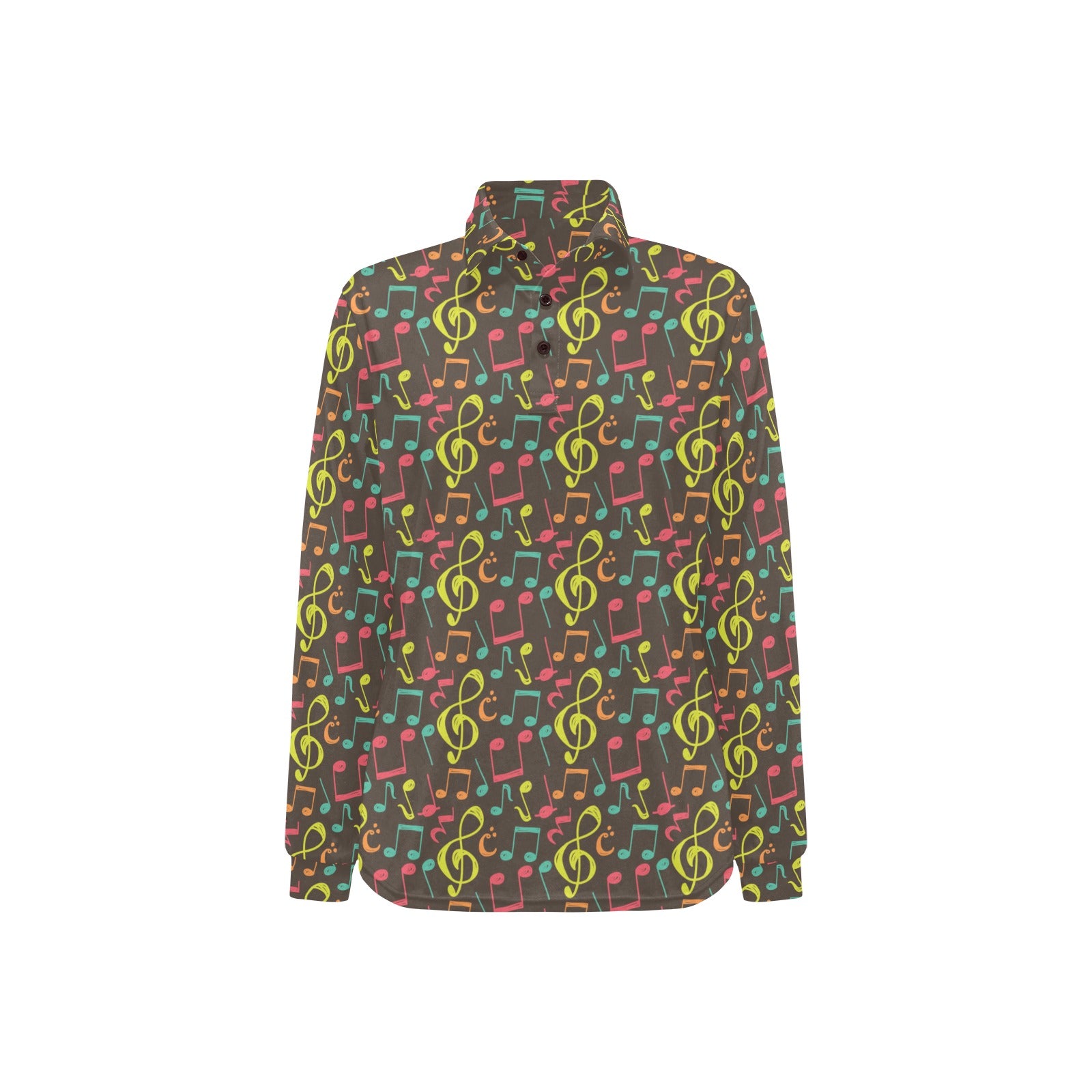 Music Notes Pattern Print Design 05 Women's Long Sleeve Polo Shirt