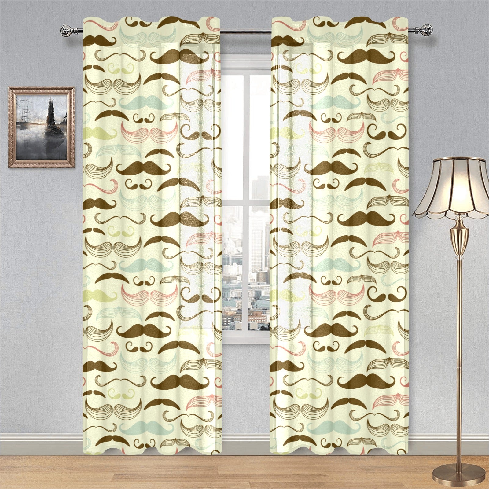 Mustache Beard Pattern Print Design 01 Gauze Curtain