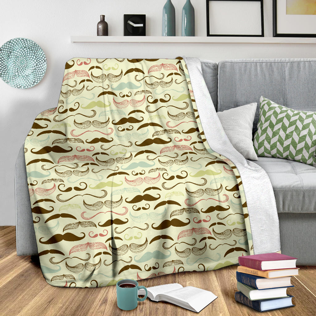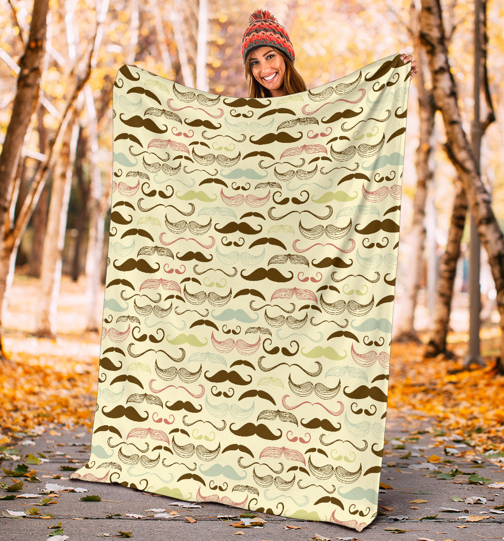 Mustache Beard Pattern Print Design 01 Premium Blanket