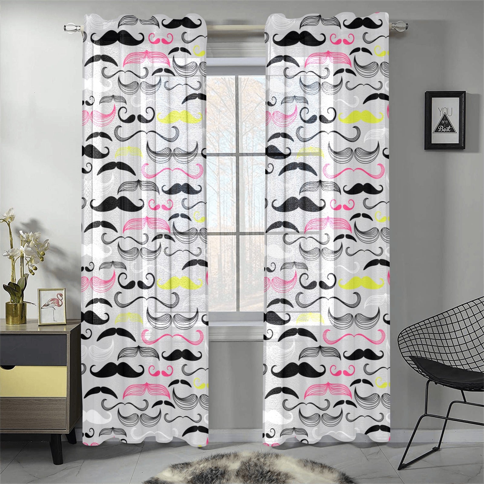 Mustache Beard Pattern Print Design 02 Gauze Curtain