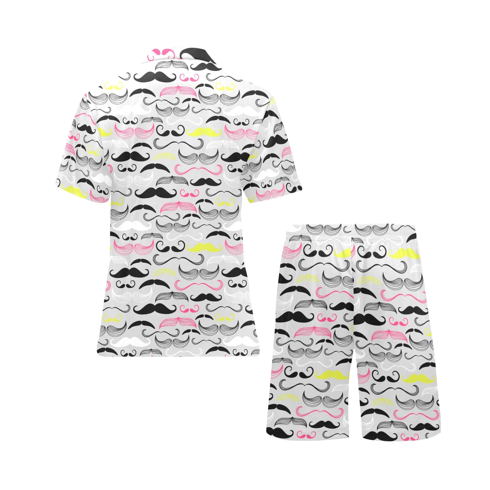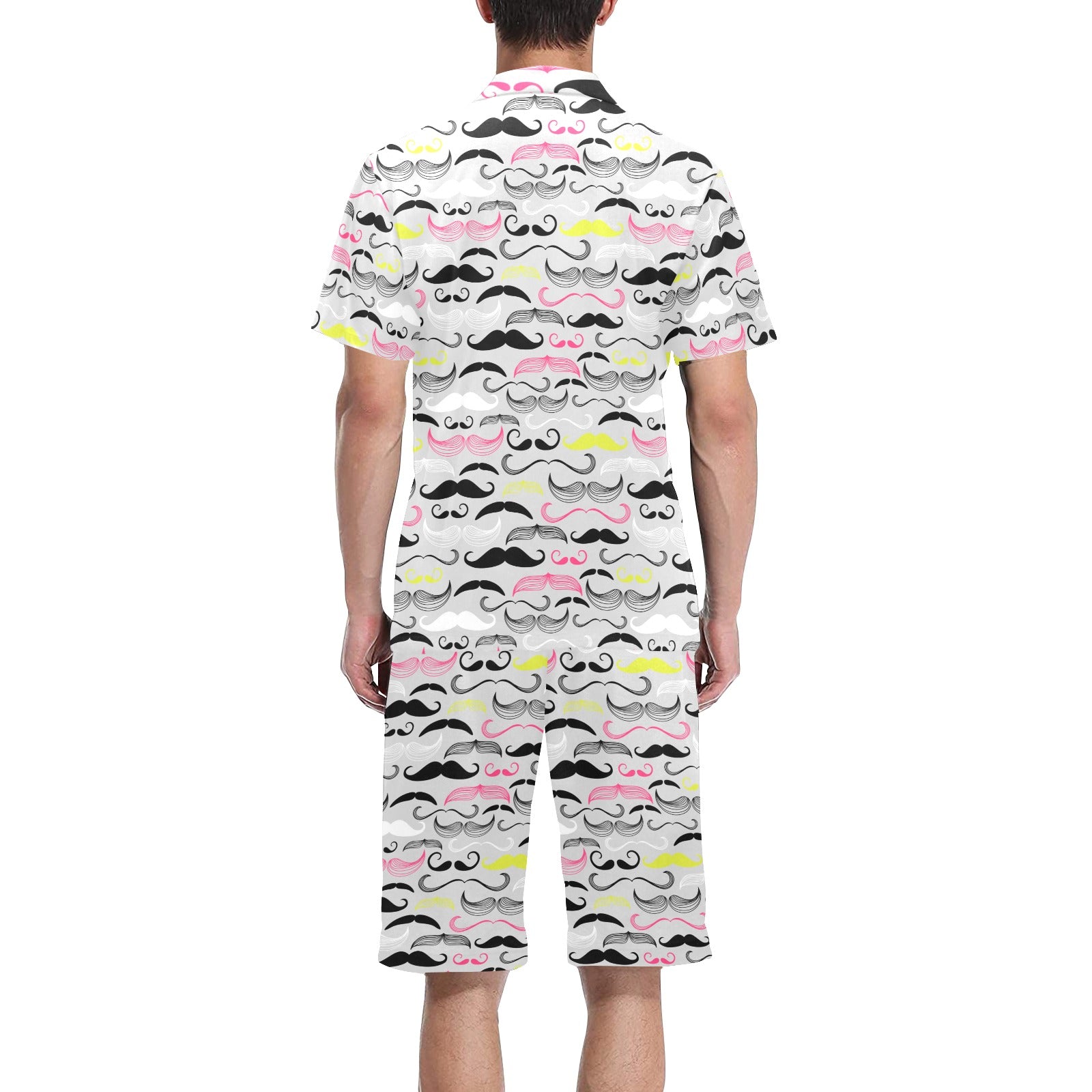 Mustache Beard Pattern Print Design 02 Men's V-Neck Short Pajama Set
