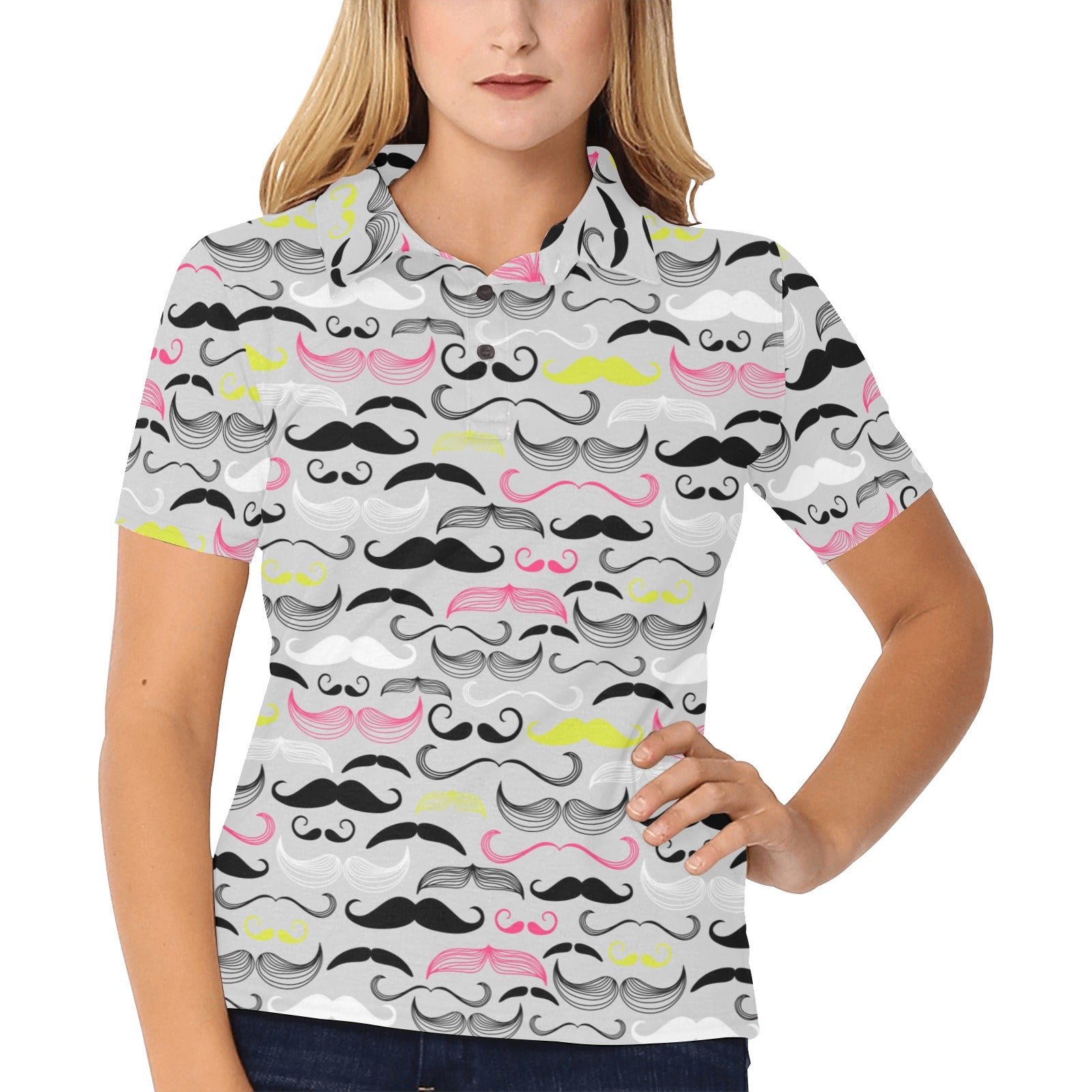 Mustache Beard Pattern Print Design 02 Women's All Over Print Polo Shirt