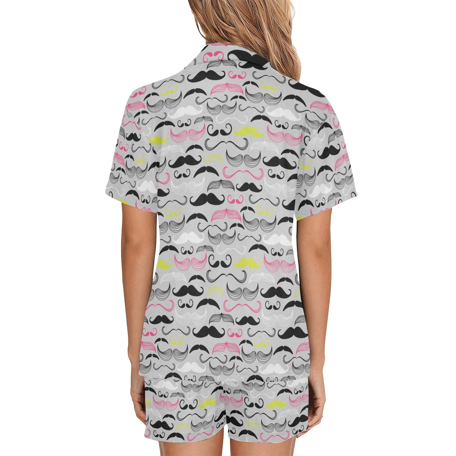 Mustache Beard Pattern Print Design 02 Women's V-Neck Short Pajama Set