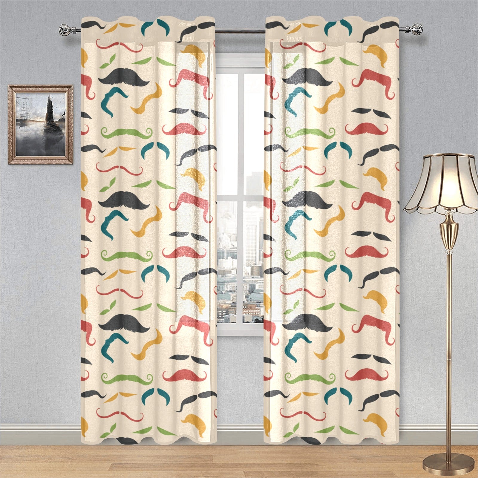 Mustache Beard Pattern Print Design 03 Gauze Curtain