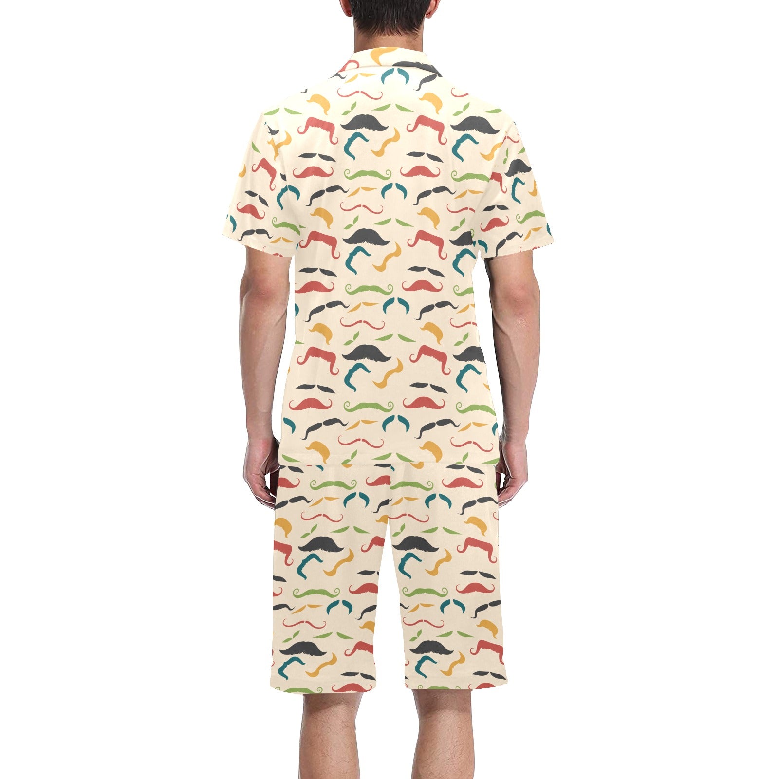 Mustache Beard Pattern Print Design 03 Men's V-Neck Short Pajama Set
