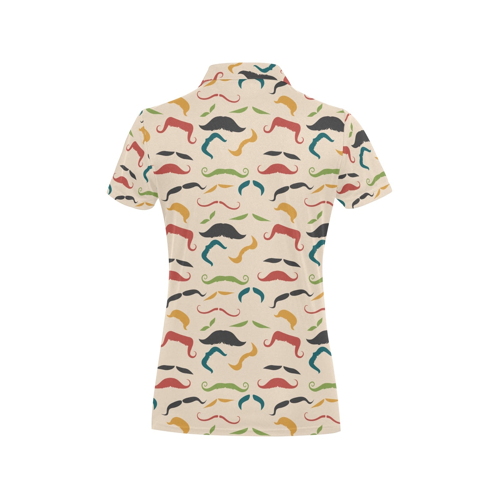 Mustache Beard Pattern Print Design 03 Women's All Over Print Polo Shirt