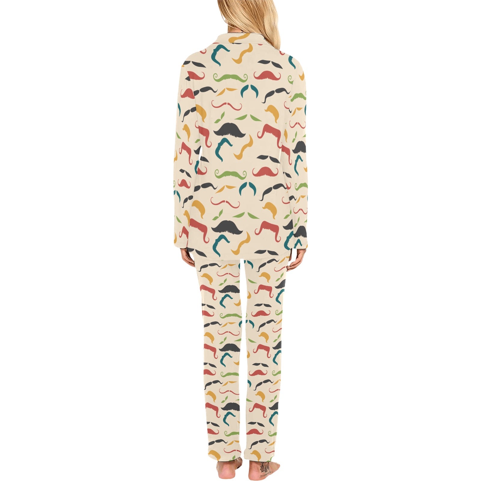 Mustache Beard Pattern Print Design 03 Women's Long Pajama Set