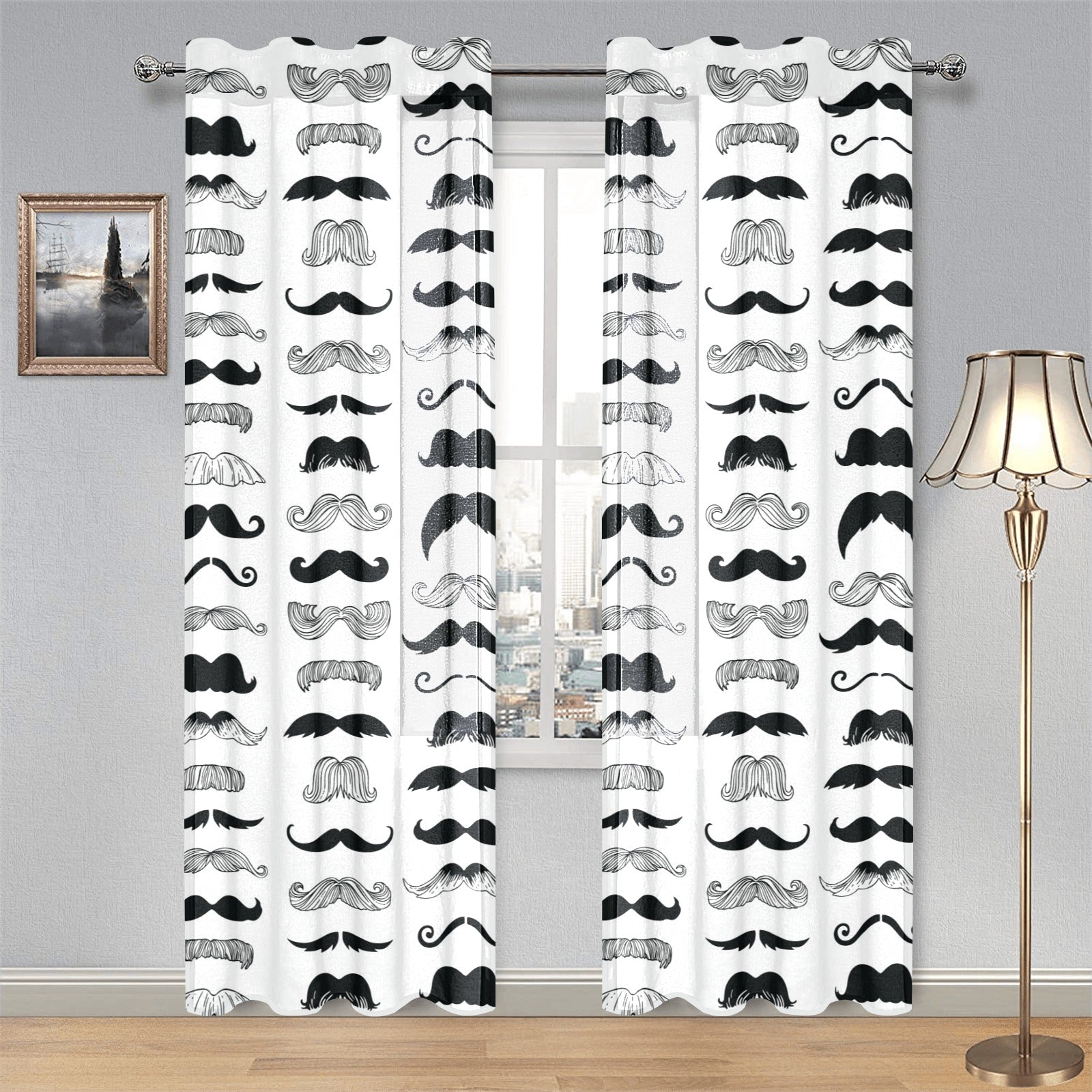 Mustache Beard Pattern Print Design 04 Gauze Curtain