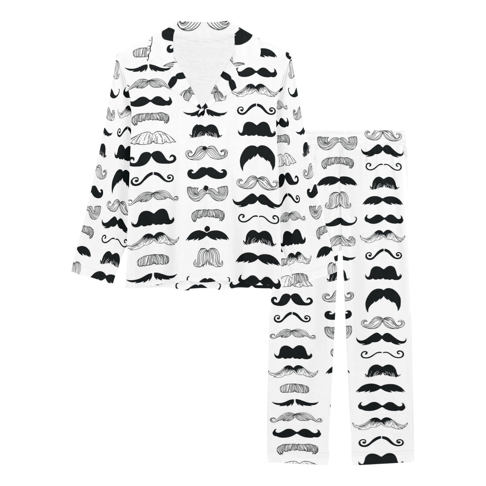 Mustache Beard Pattern Print Design 04 Women's Long Pajama Set