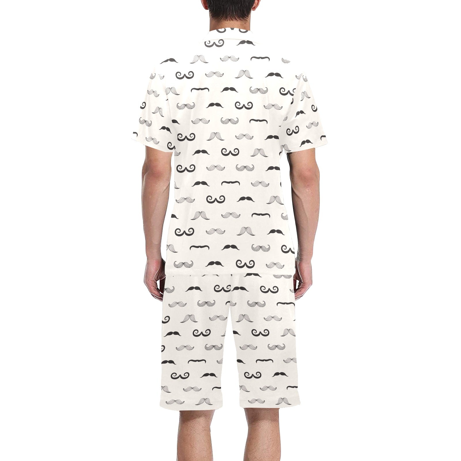 Mustache Beard Pattern Print Design 05 Men's V-Neck Short Pajama Set