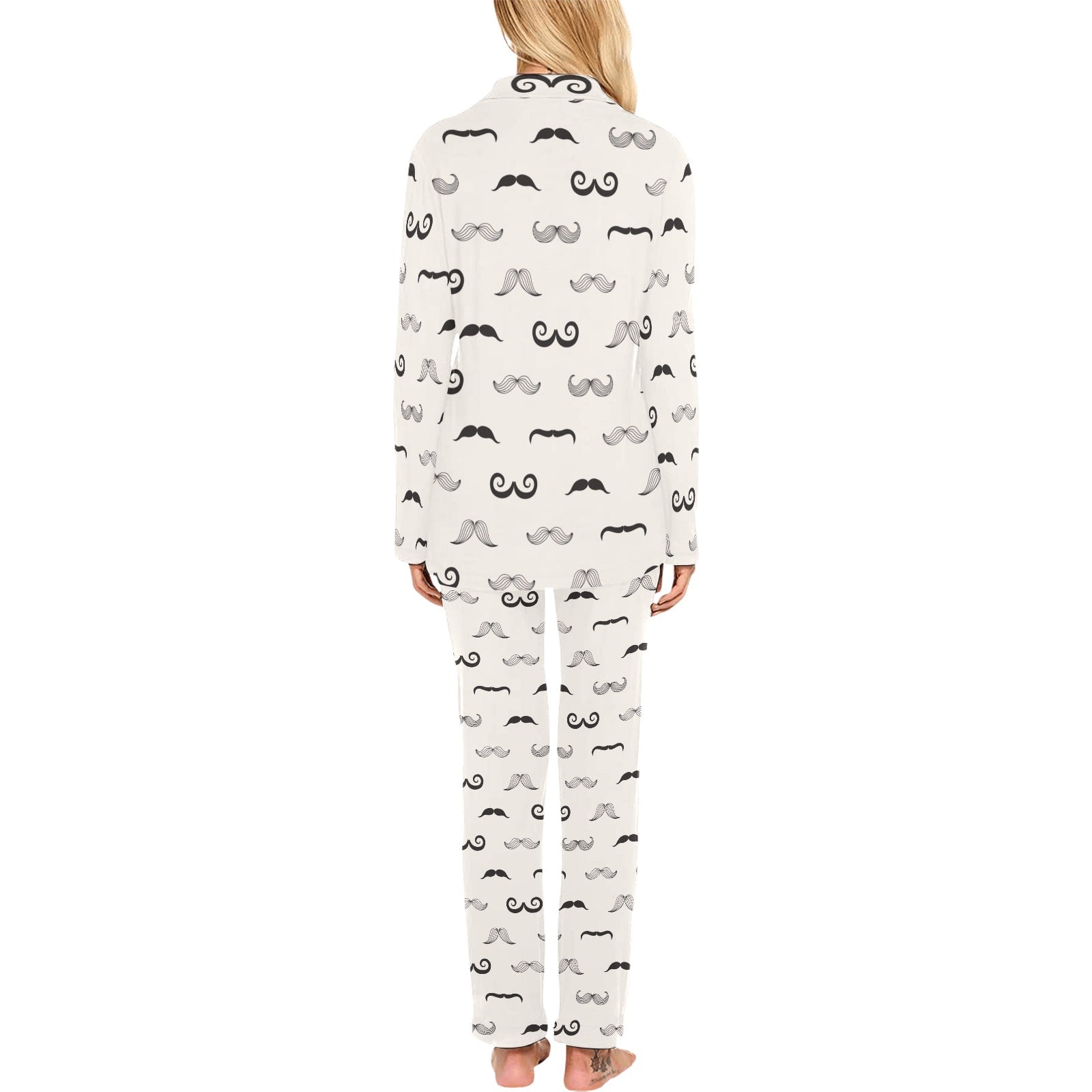 Mustache Beard Pattern Print Design 05 Women's Long Pajama Set