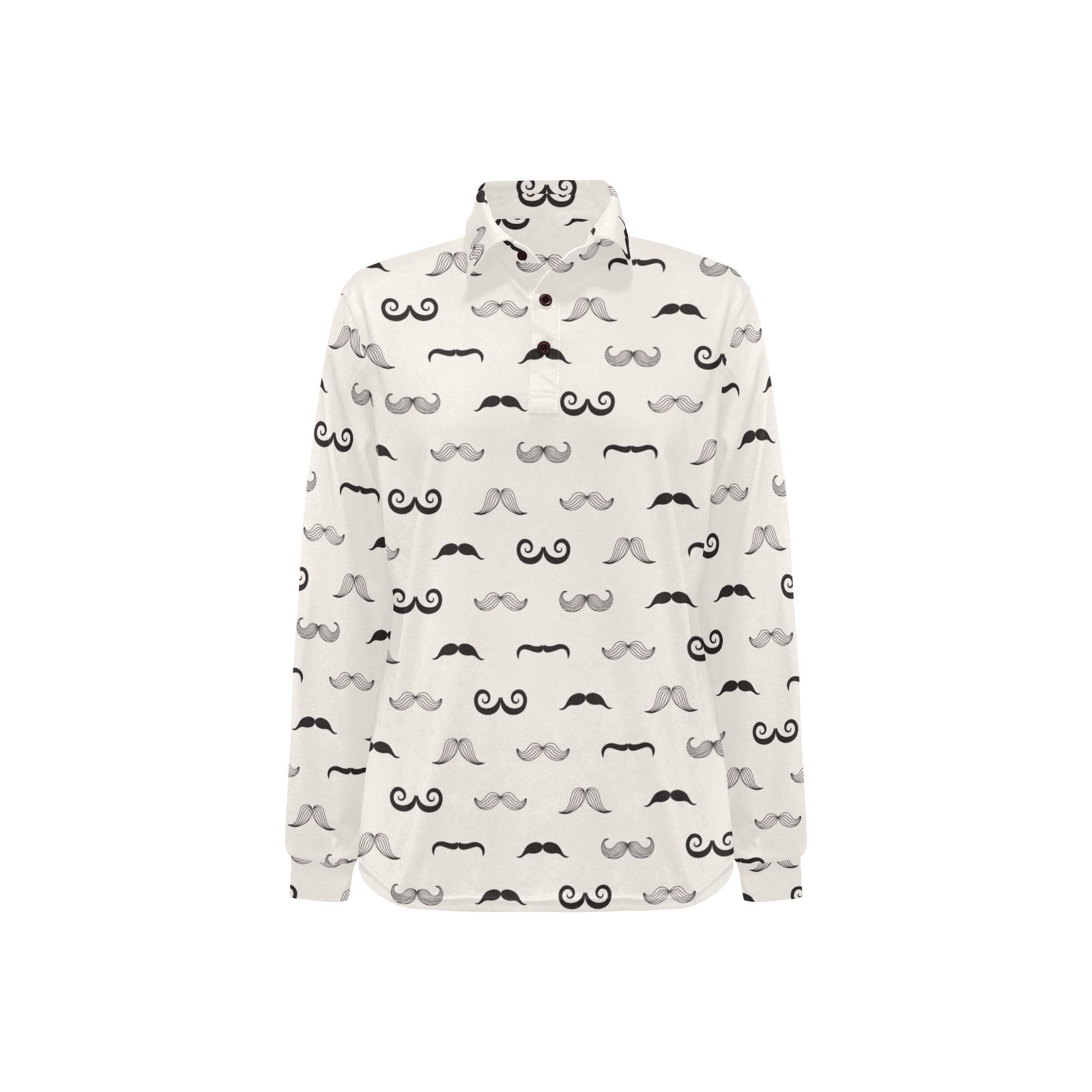 Mustache Beard Pattern Print Design 05 Women's Long Sleeve Polo Shirt