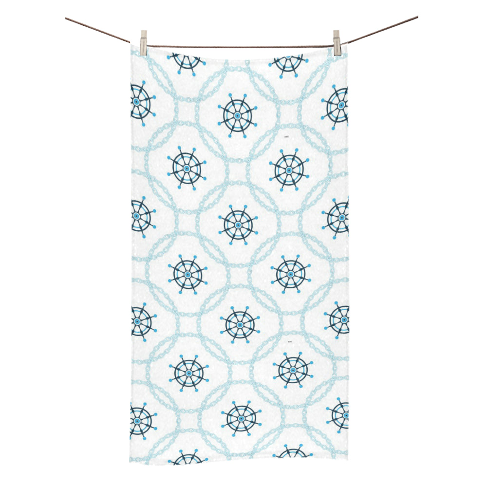 nautical steering wheel chain Bath Towel 30"x56" is a uniqued design and limited item. It made to order, hand printed, and sewn with love in our factory.
