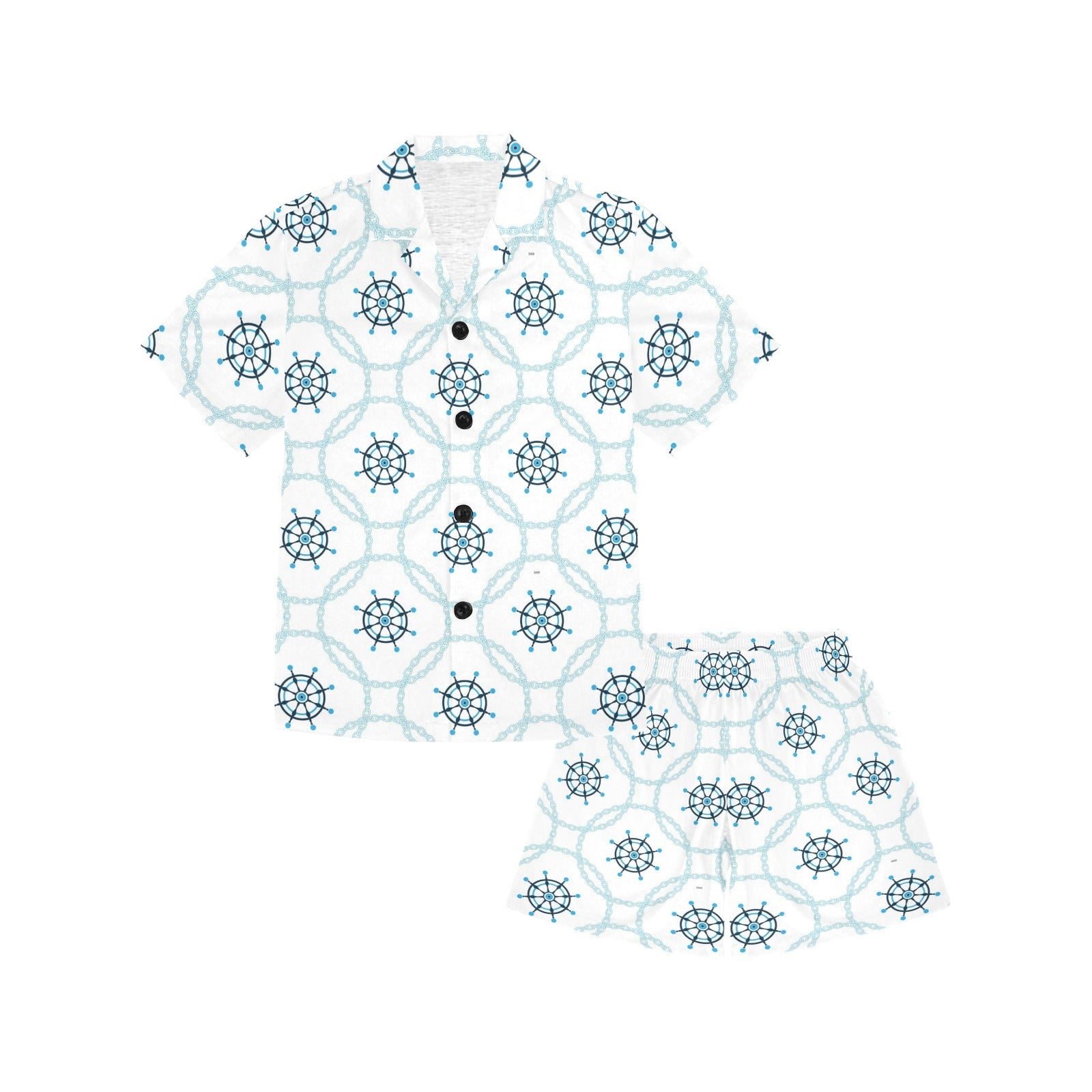 nautical steering wheel chain Kids' Boys' Girls' V-Neck Short Pajama Set
