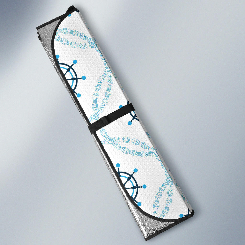 nautical steering wheel chain Car Sun Shade is a uniqued design and limited item. It made to order, hand printed, and sewn with love in our factory.