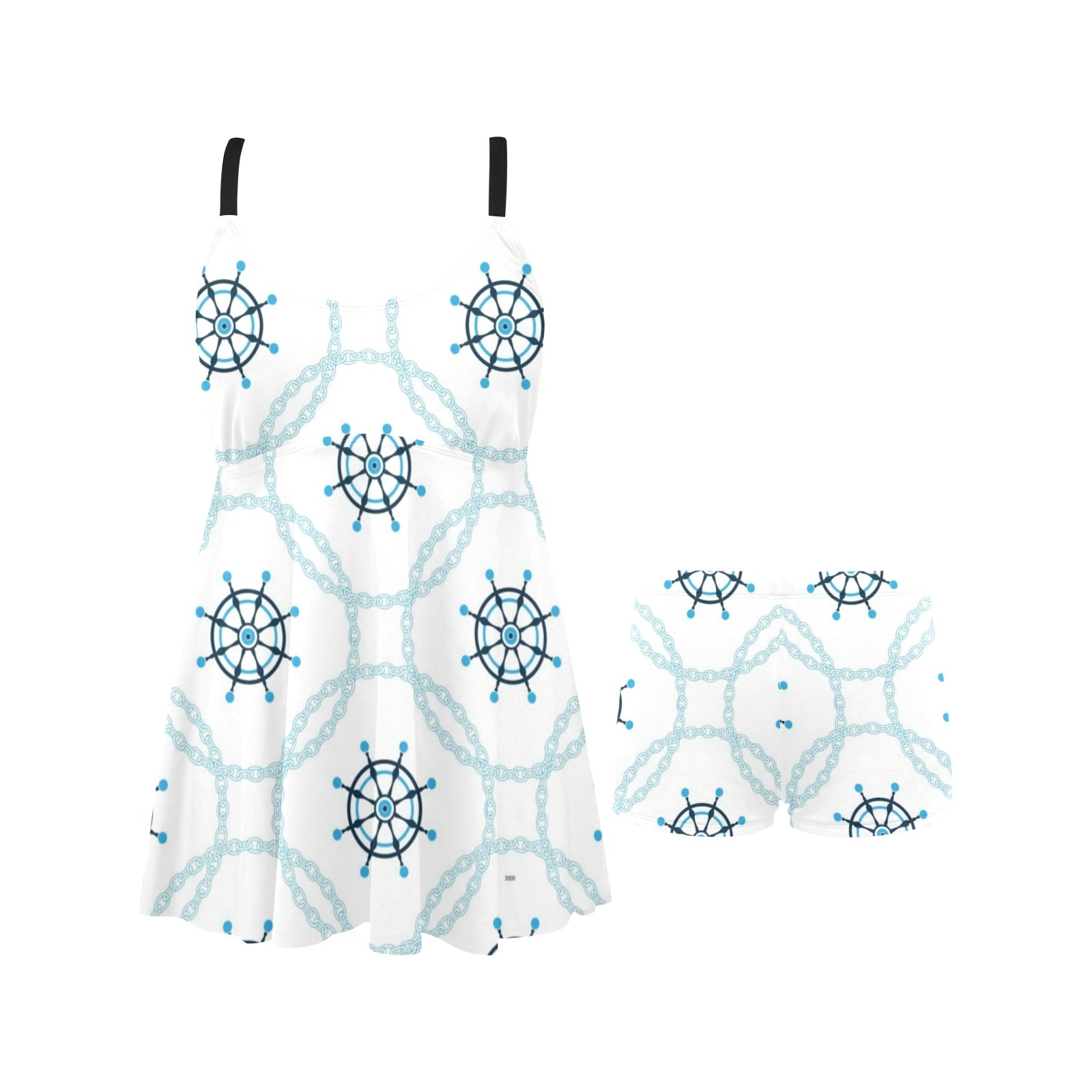 nautical steering wheel chain Chest Sexy Pleated Two Piece Swim Dress