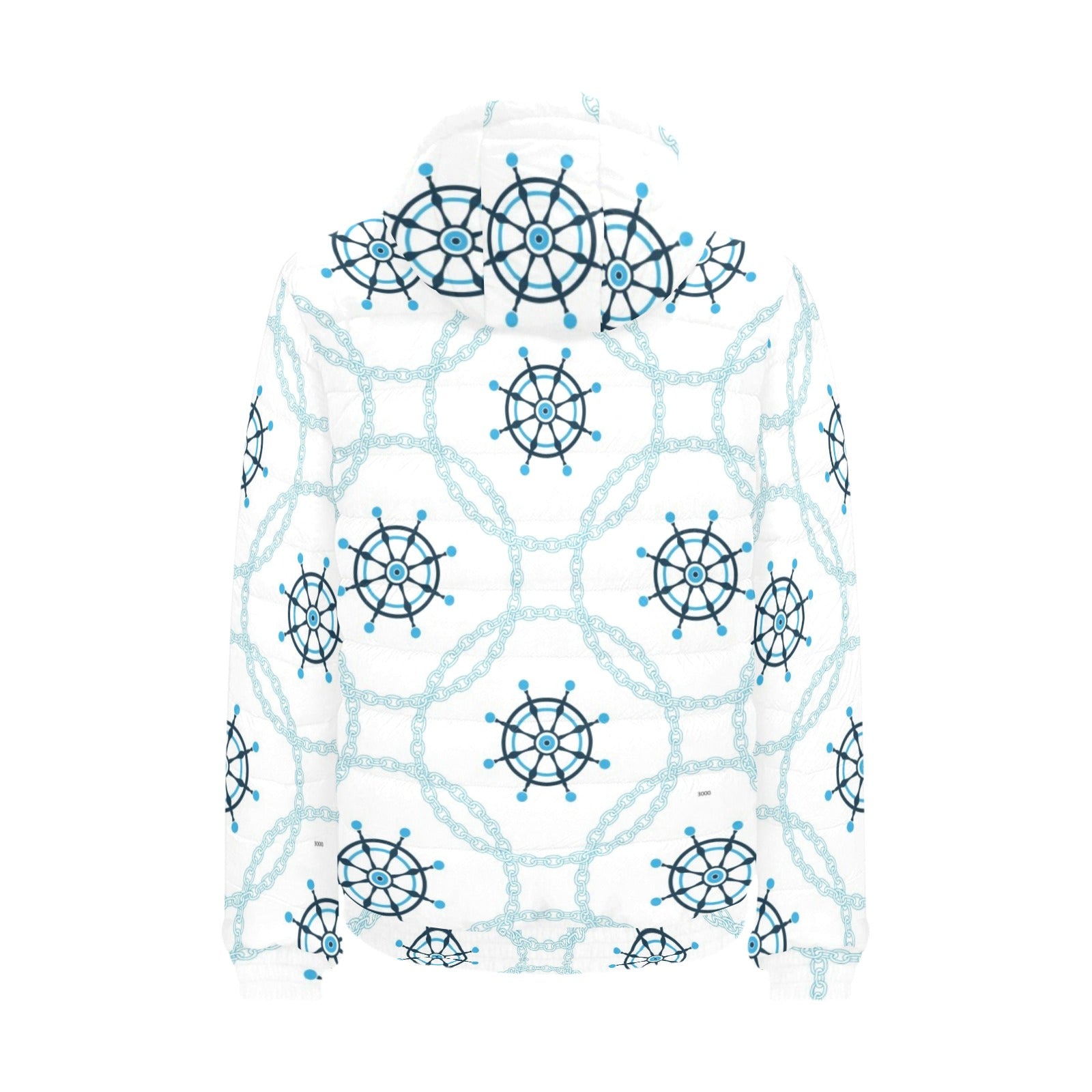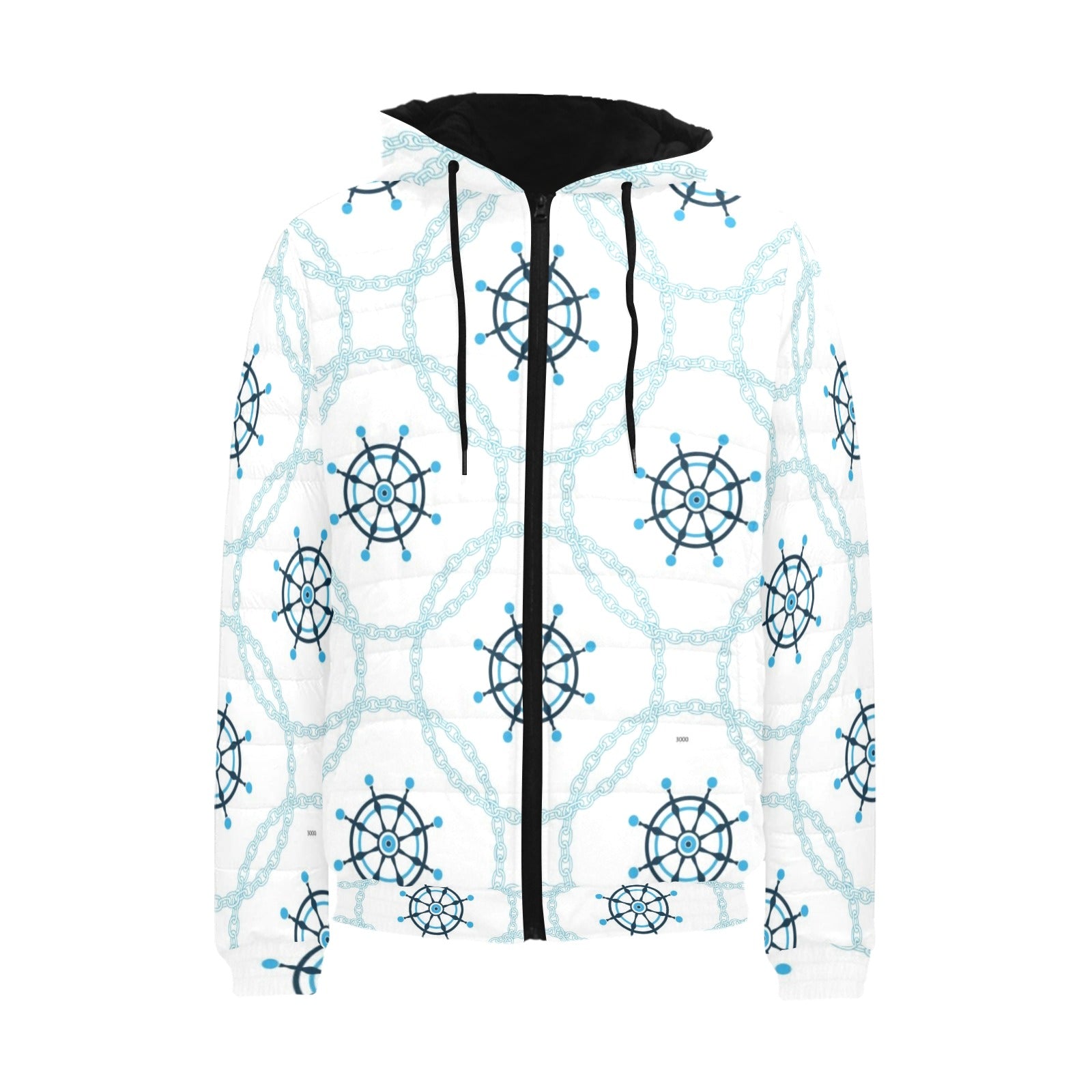 nautical steering wheel chain Men's Padded Hooded Jacket