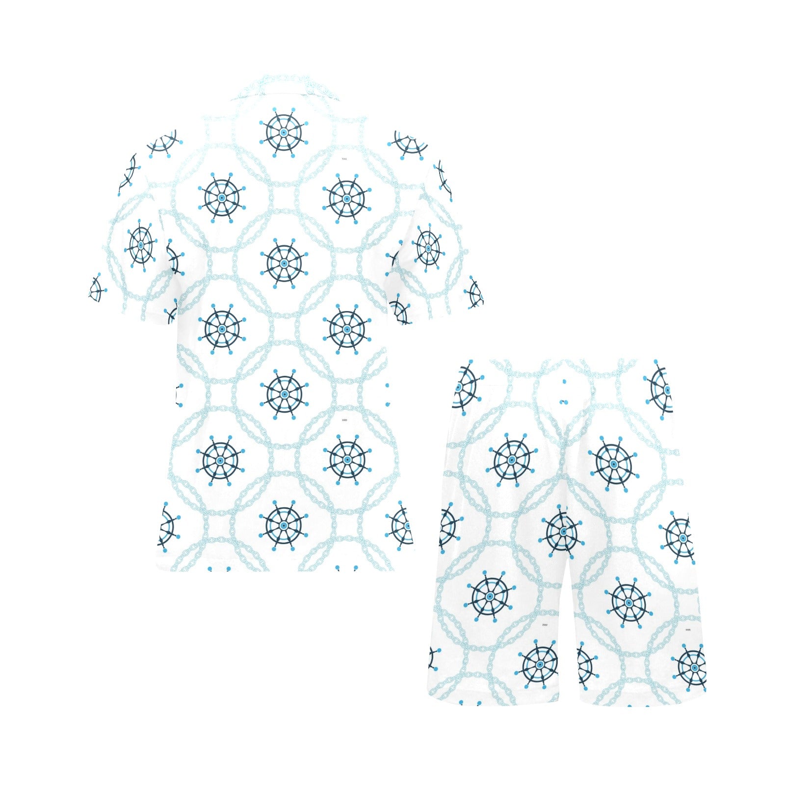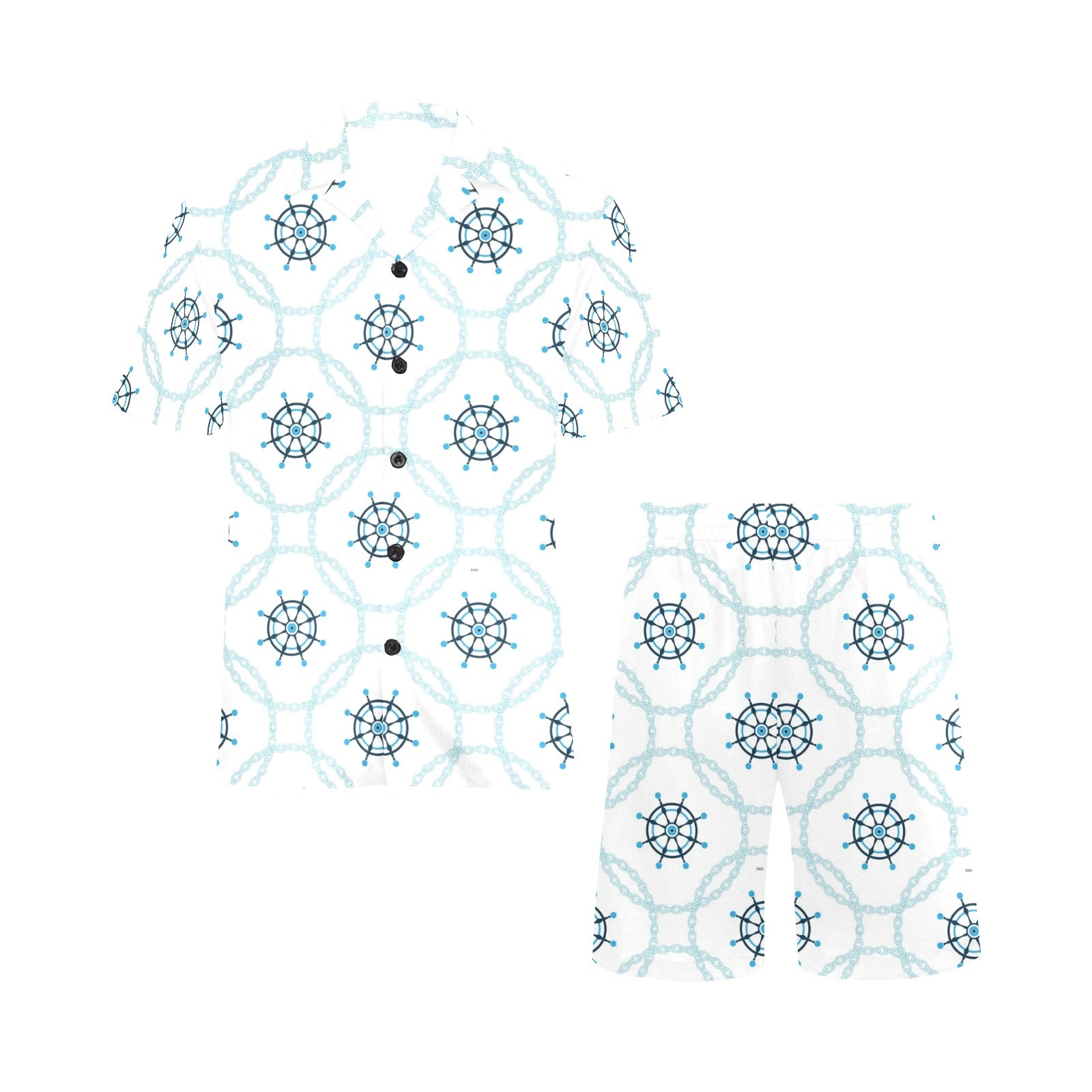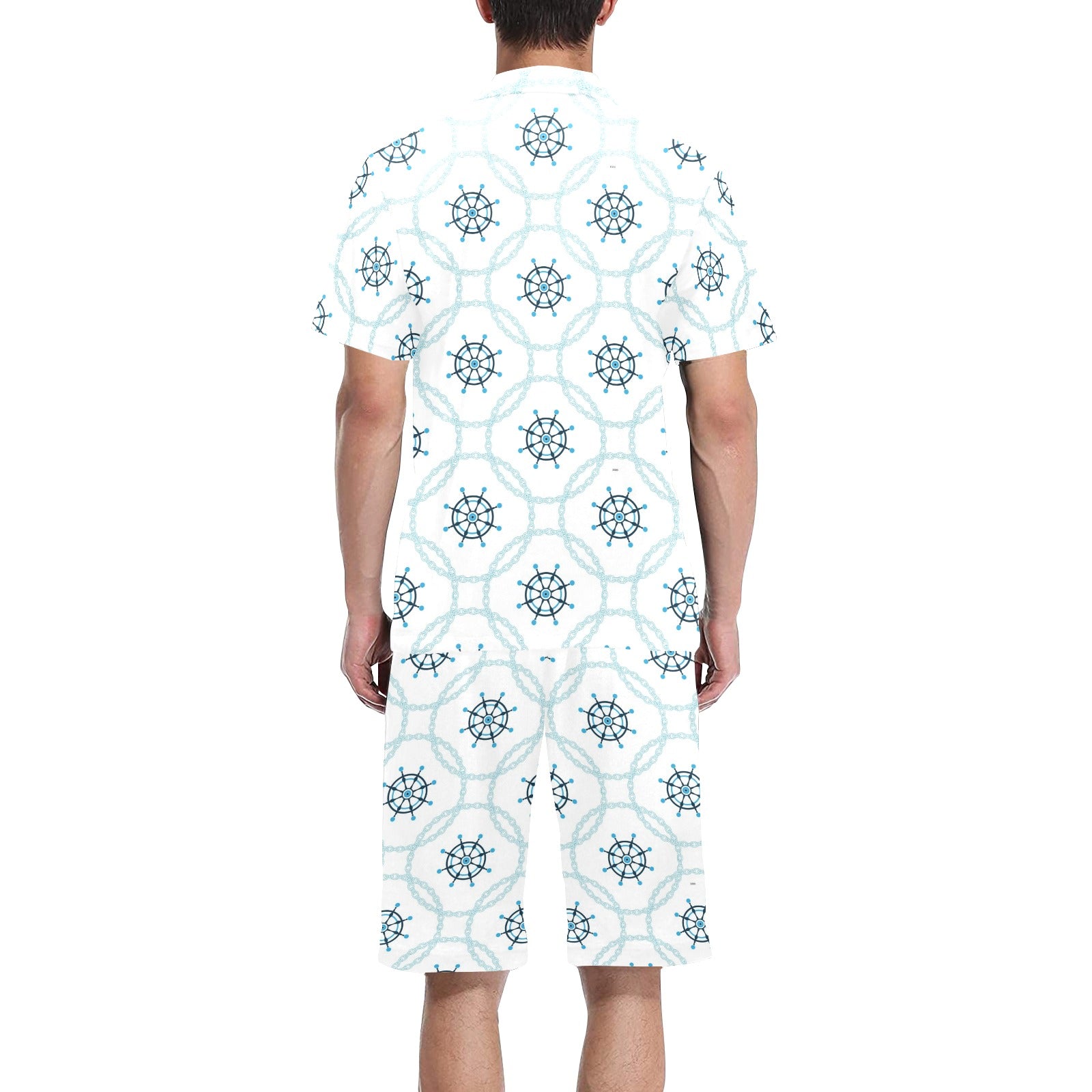 nautical steering wheel chain Men's V-Neck Short Pajama Set