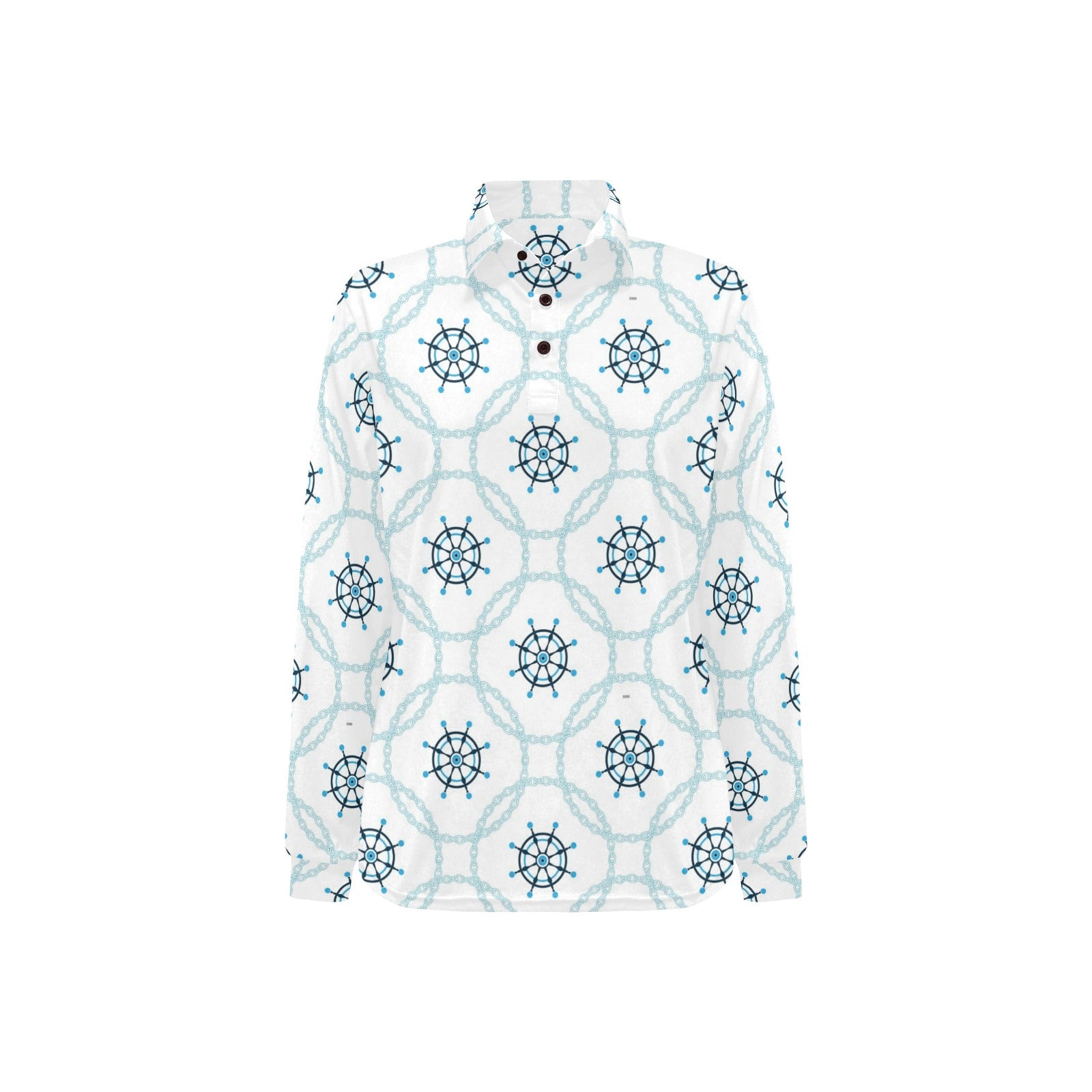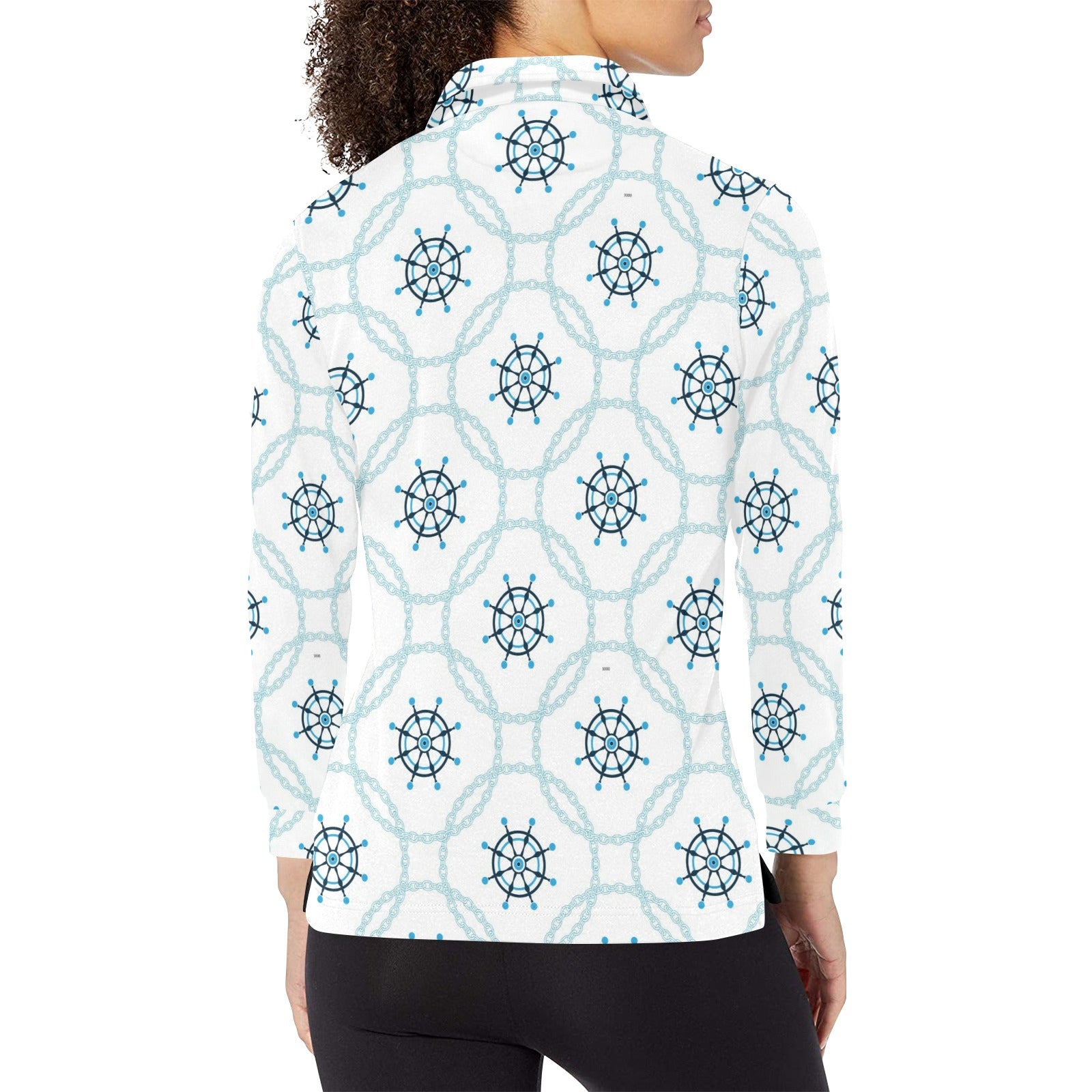 nautical steering wheel chain Women's Long Sleeve Polo Shirt
