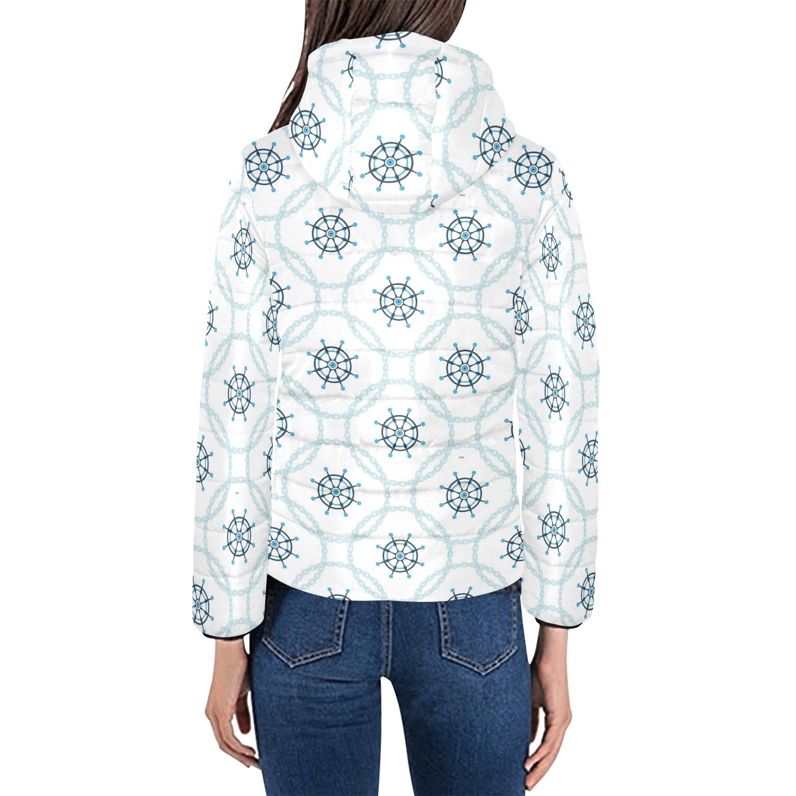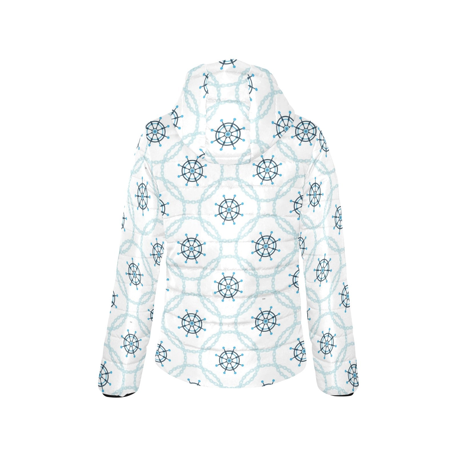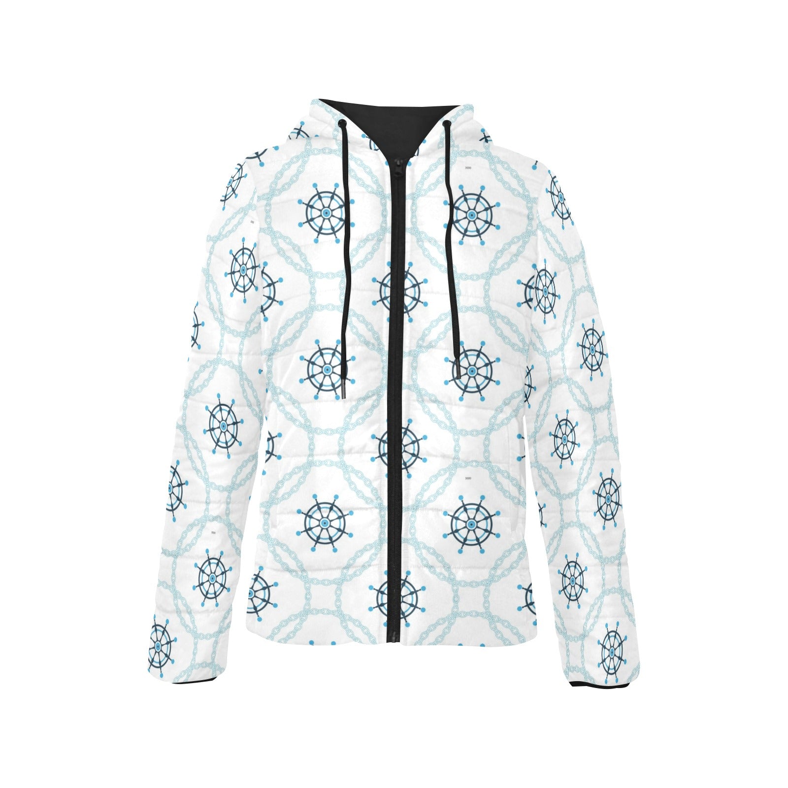 nautical steering wheel chain Women's Padded Hooded Jacket