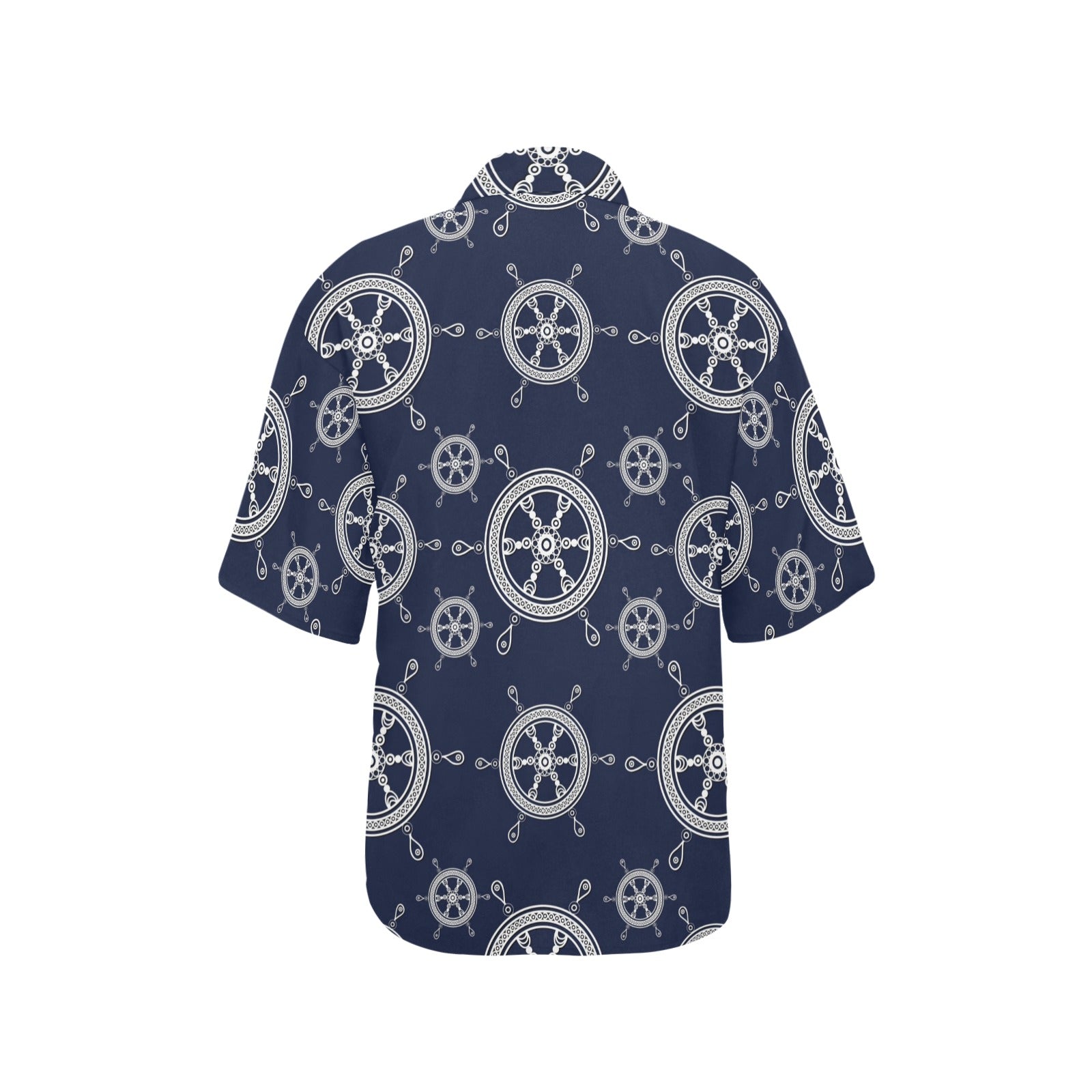nautical steering wheel design pattern Women's All Over Print Hawaiian Shirt