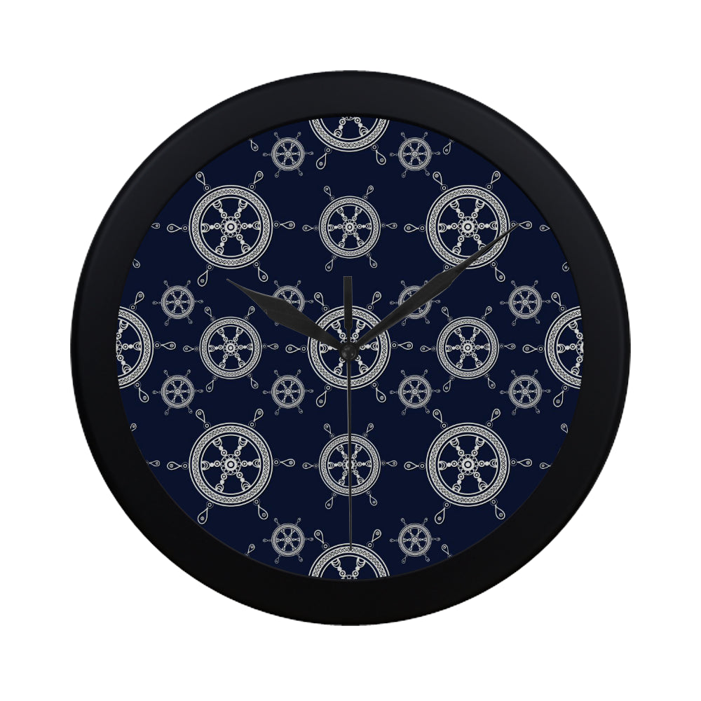 nautical steering wheel design pattern Elegant Black Wall Clock is a uniqued design and limited item. It made to order, hand printed, and sewn with love in our factory.