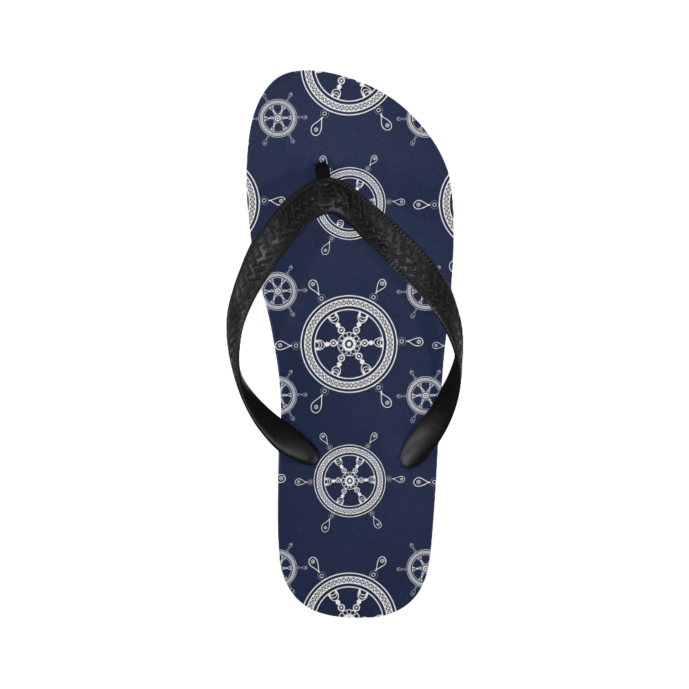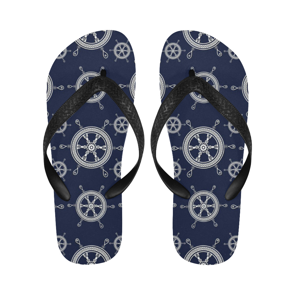 nautical steering wheel design pattern Unisex Flip Flops is a uniqued design and limited item. It made to order, hand printed, and sewn with love in our factory.