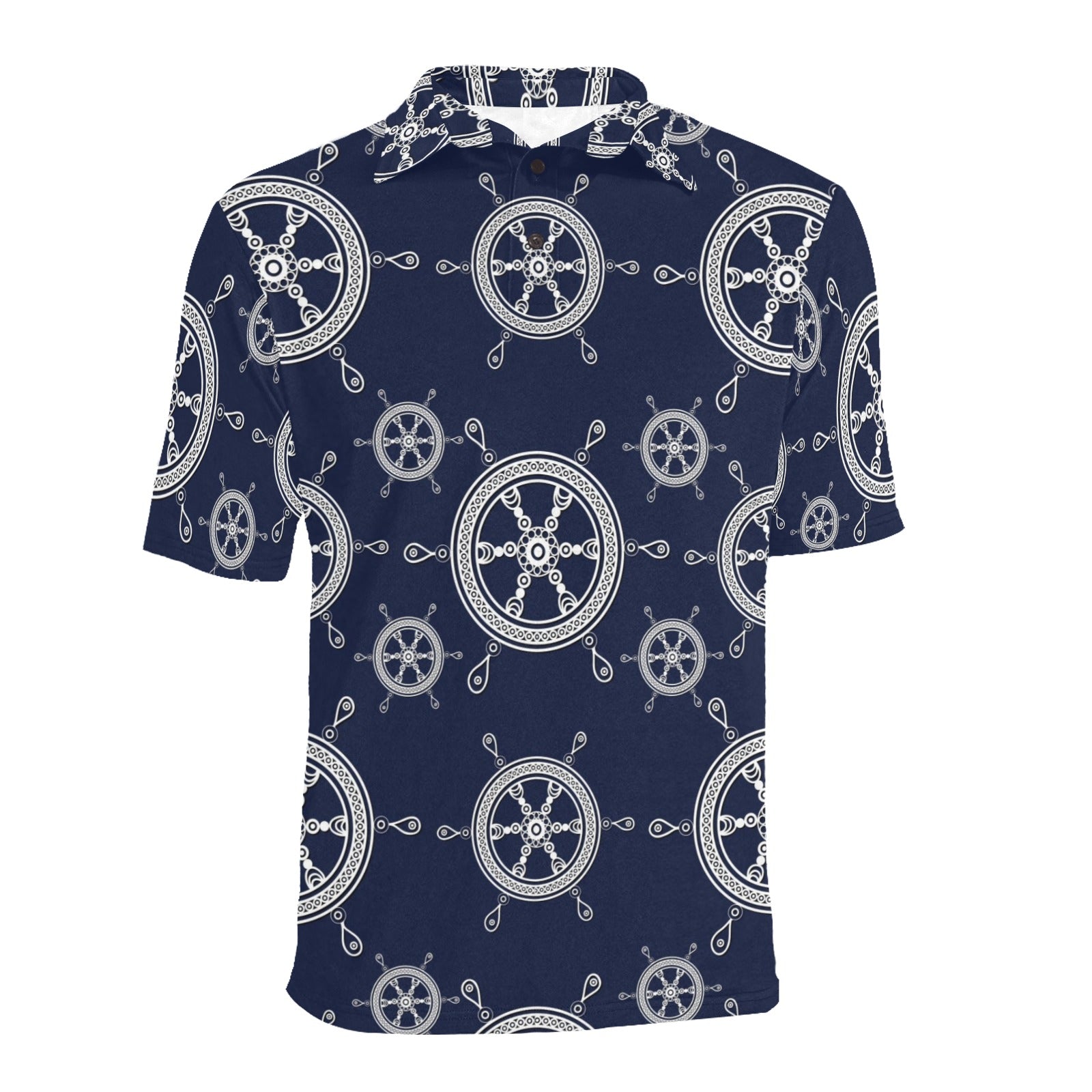 nautical steering wheel design pattern Men's All Over Print Polo Shirt