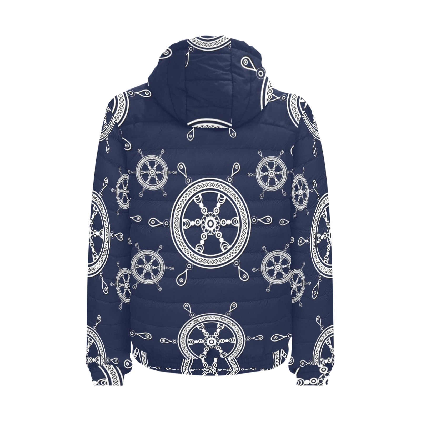 nautical steering wheel design pattern Men's Padded Hooded Jacket