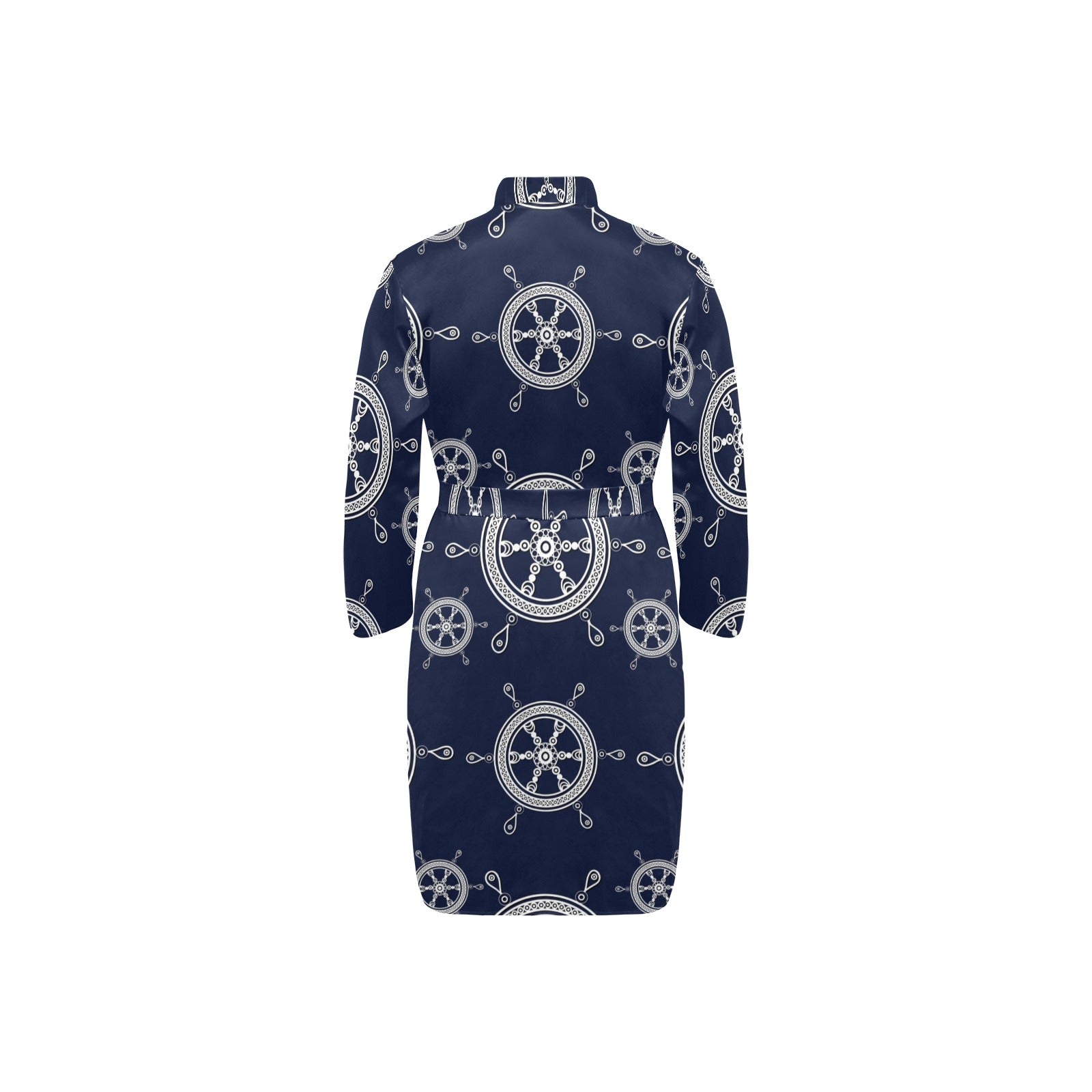 nautical steering wheel design pattern Men's Long Sleeve Belted Night Robe