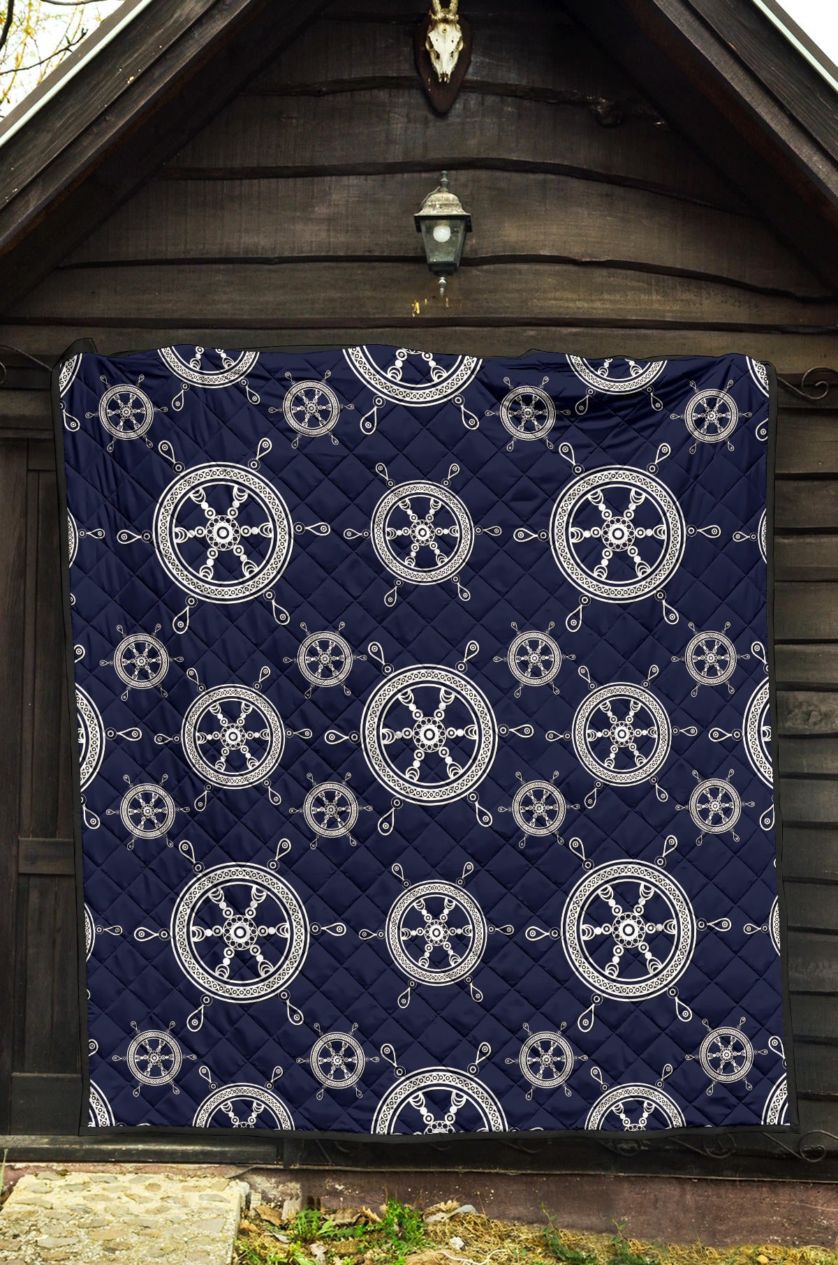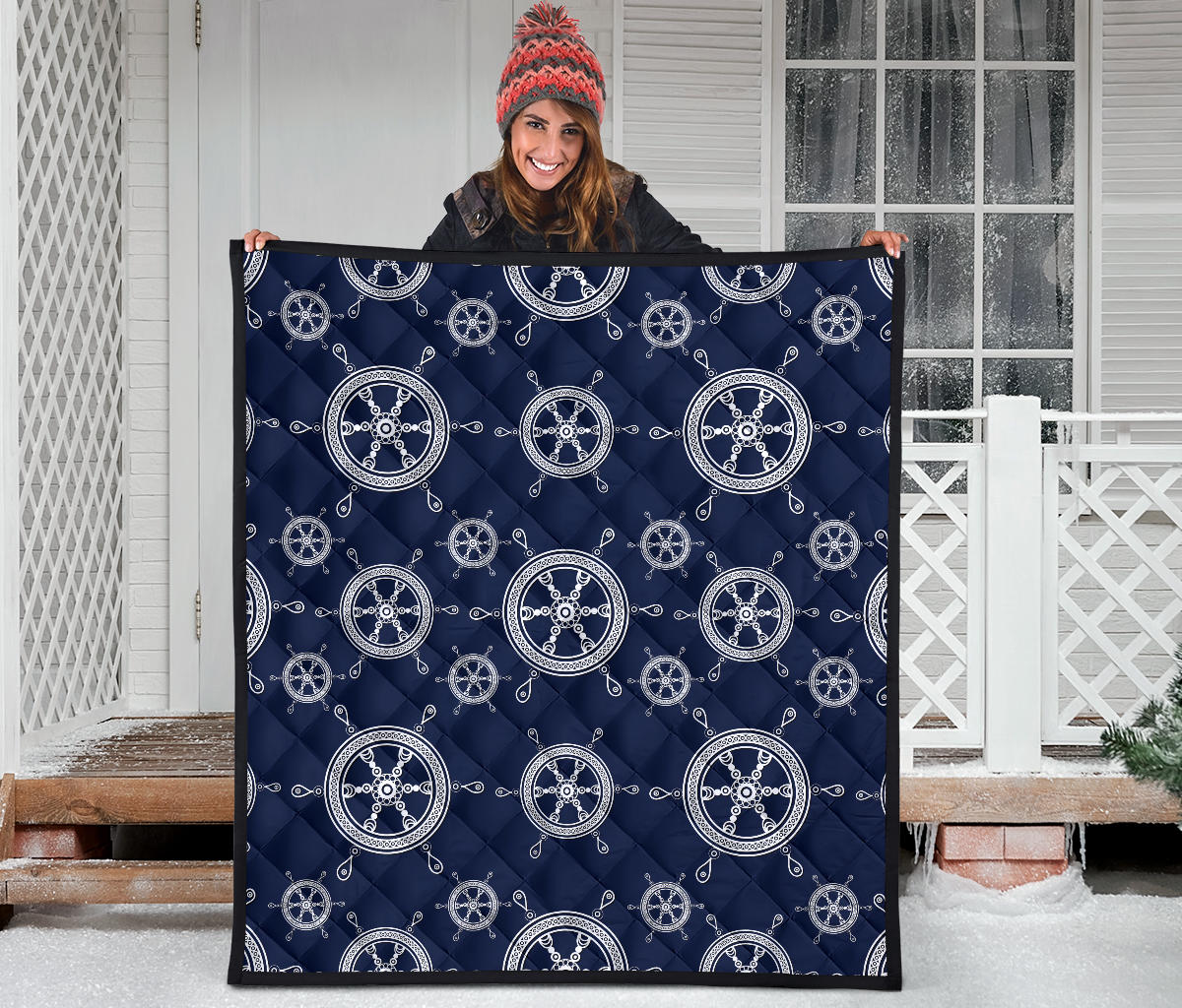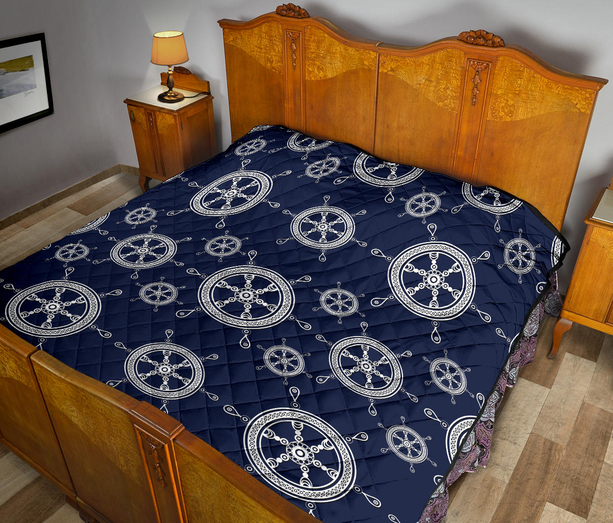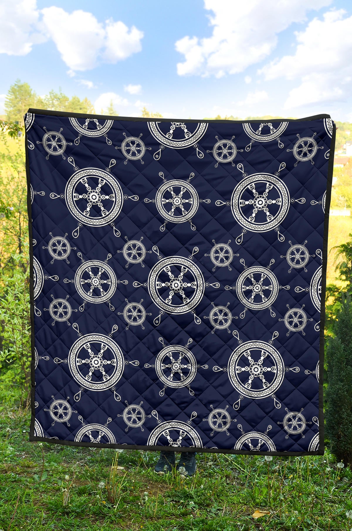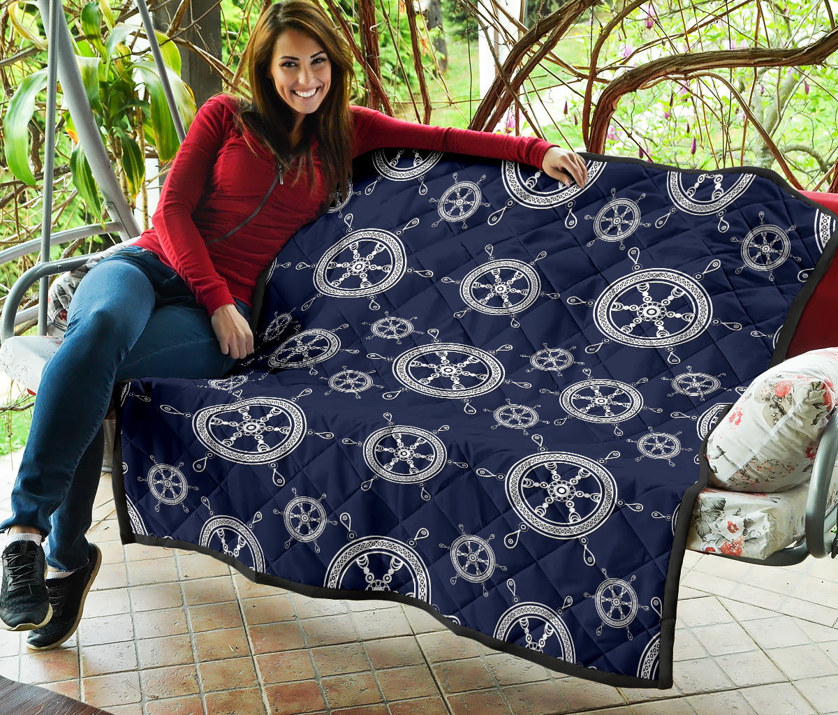 Nautical Steering Wheel Design Pattern Premium Quilt is a uniqued design and limited item. It made to order, hand printed, and sewn with love in our factory.