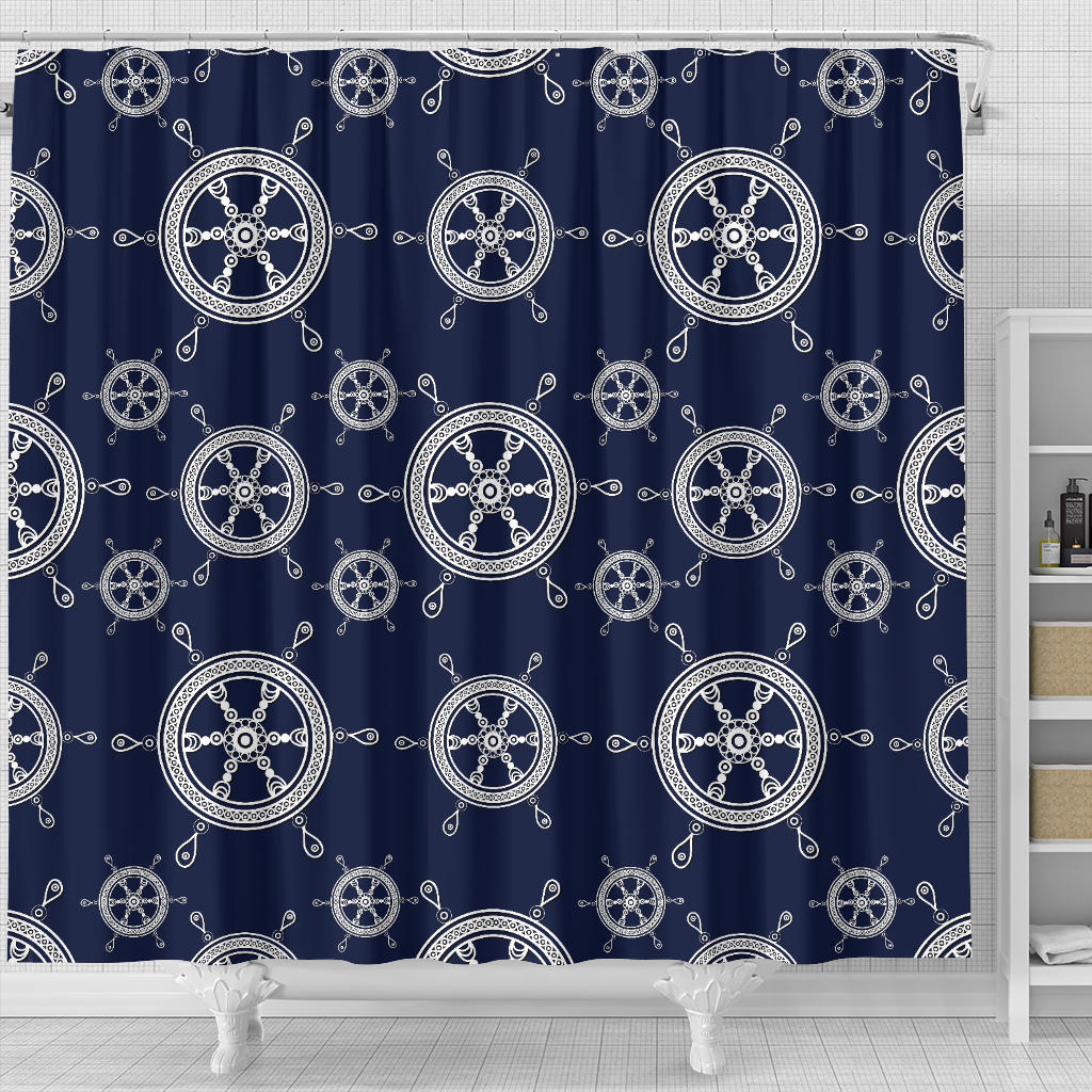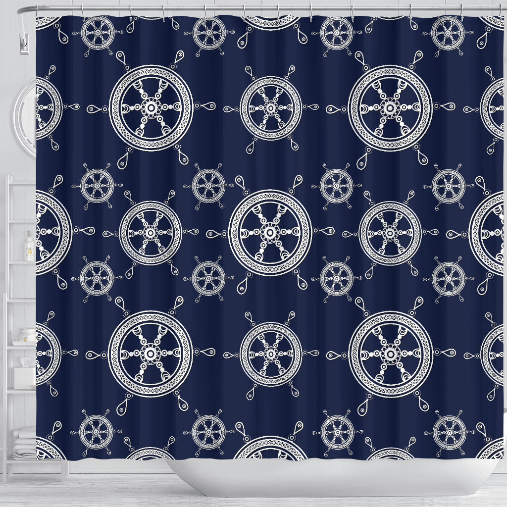 Nautical Steering Wheel Design Pattern Shower Curtain Fulfilled In US