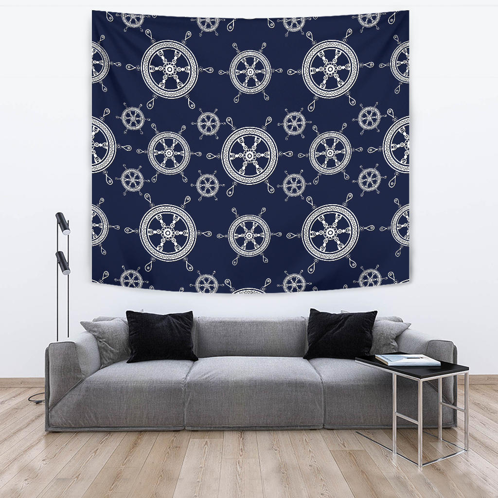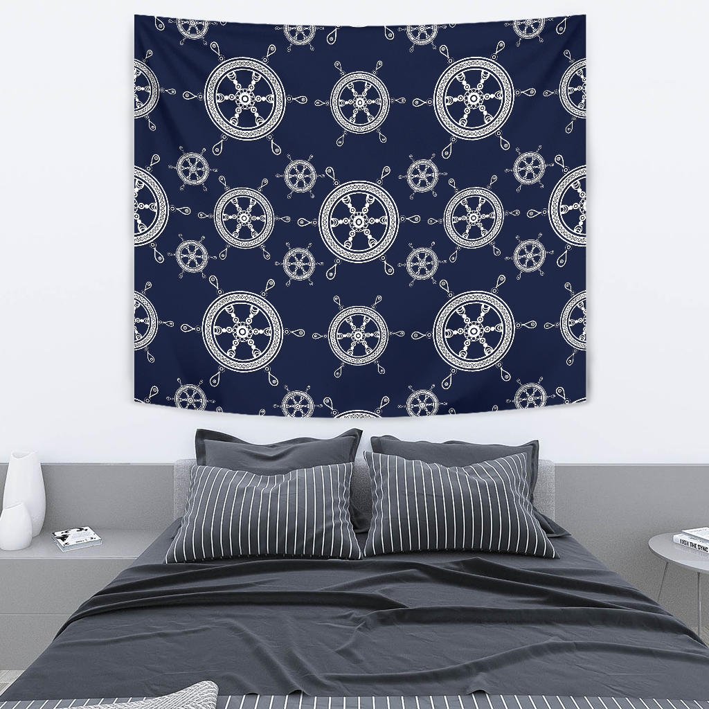 Nautical Steering Wheel Design Pattern Wall Tapestry