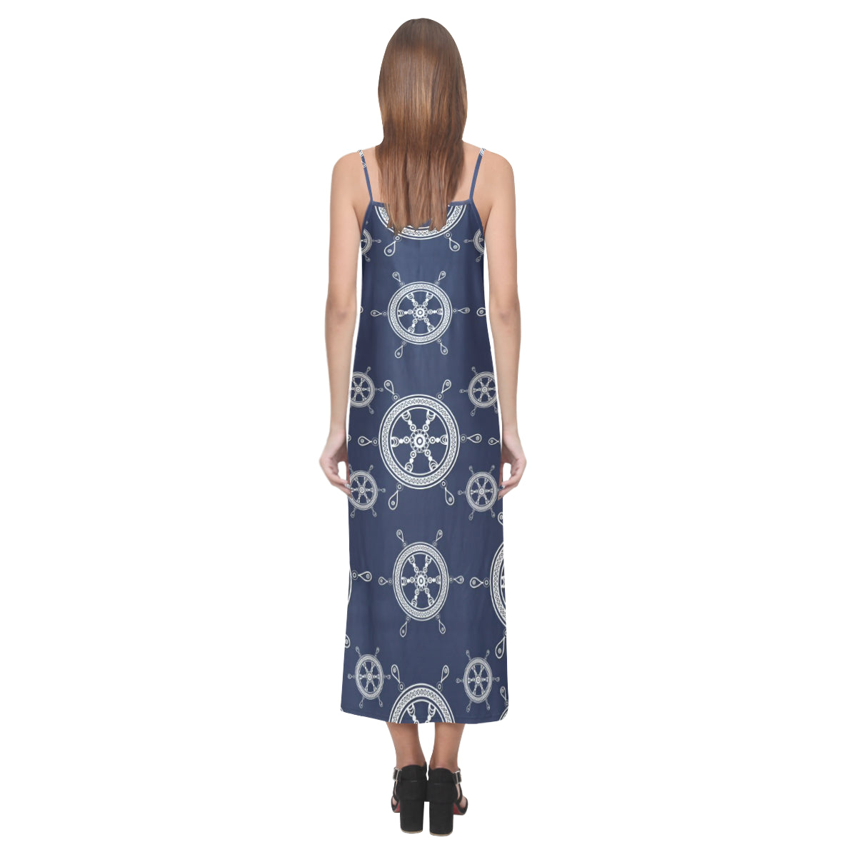 nautical steering wheel design pattern V-Neck Open Fork Long Dress is a uniqued design and limited item. It made to order, hand printed, and sewn with love in our factory.