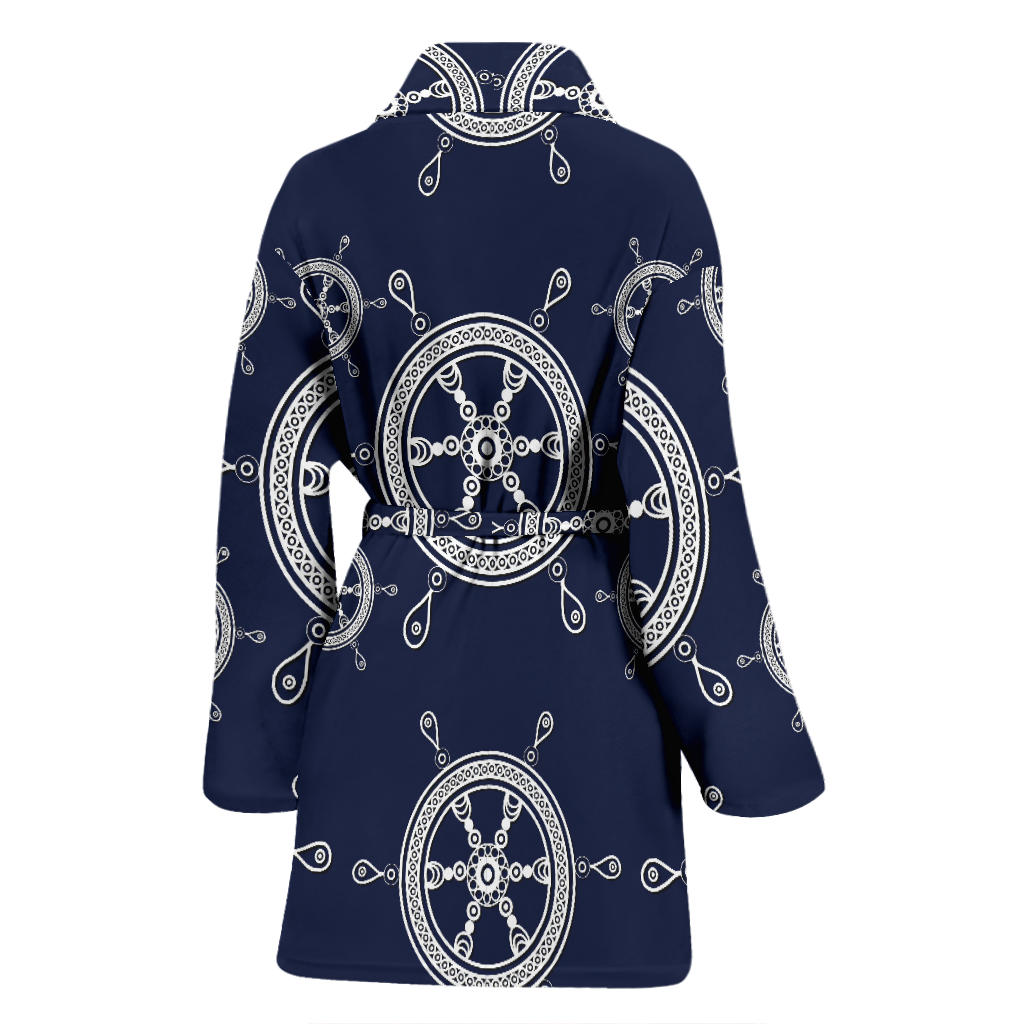 Nautical Steering Wheel Design Pattern Women'S Bathrobe