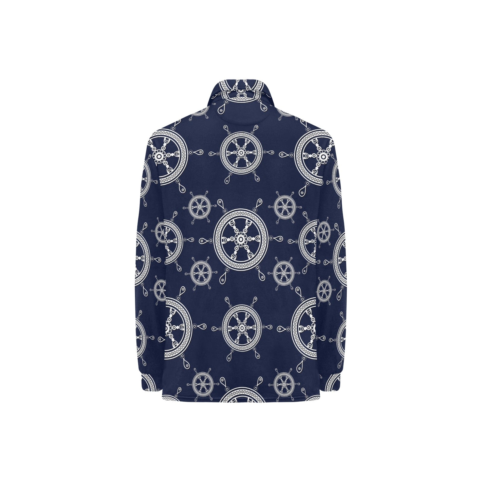 nautical steering wheel design pattern Women's Long Sleeve Polo Shirt