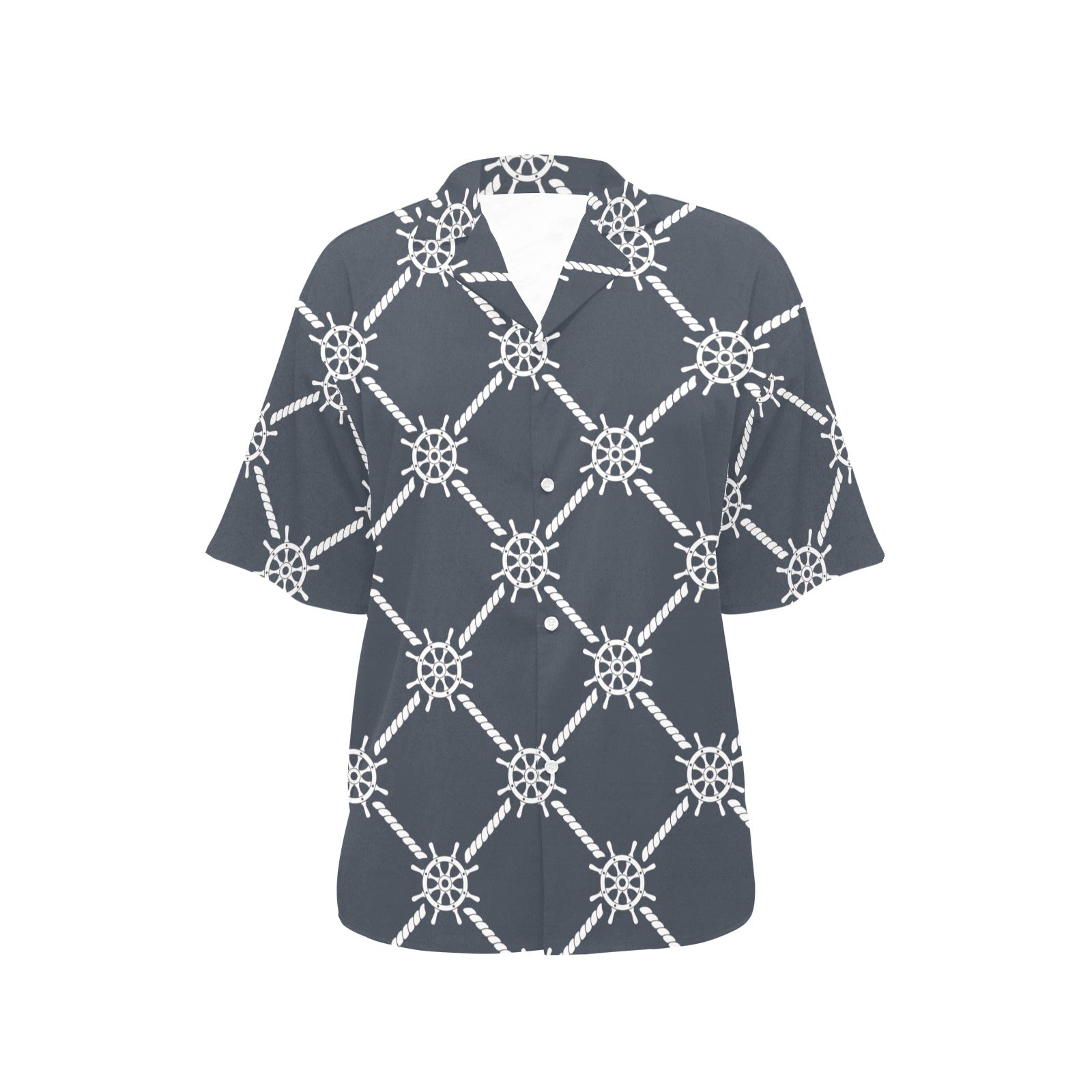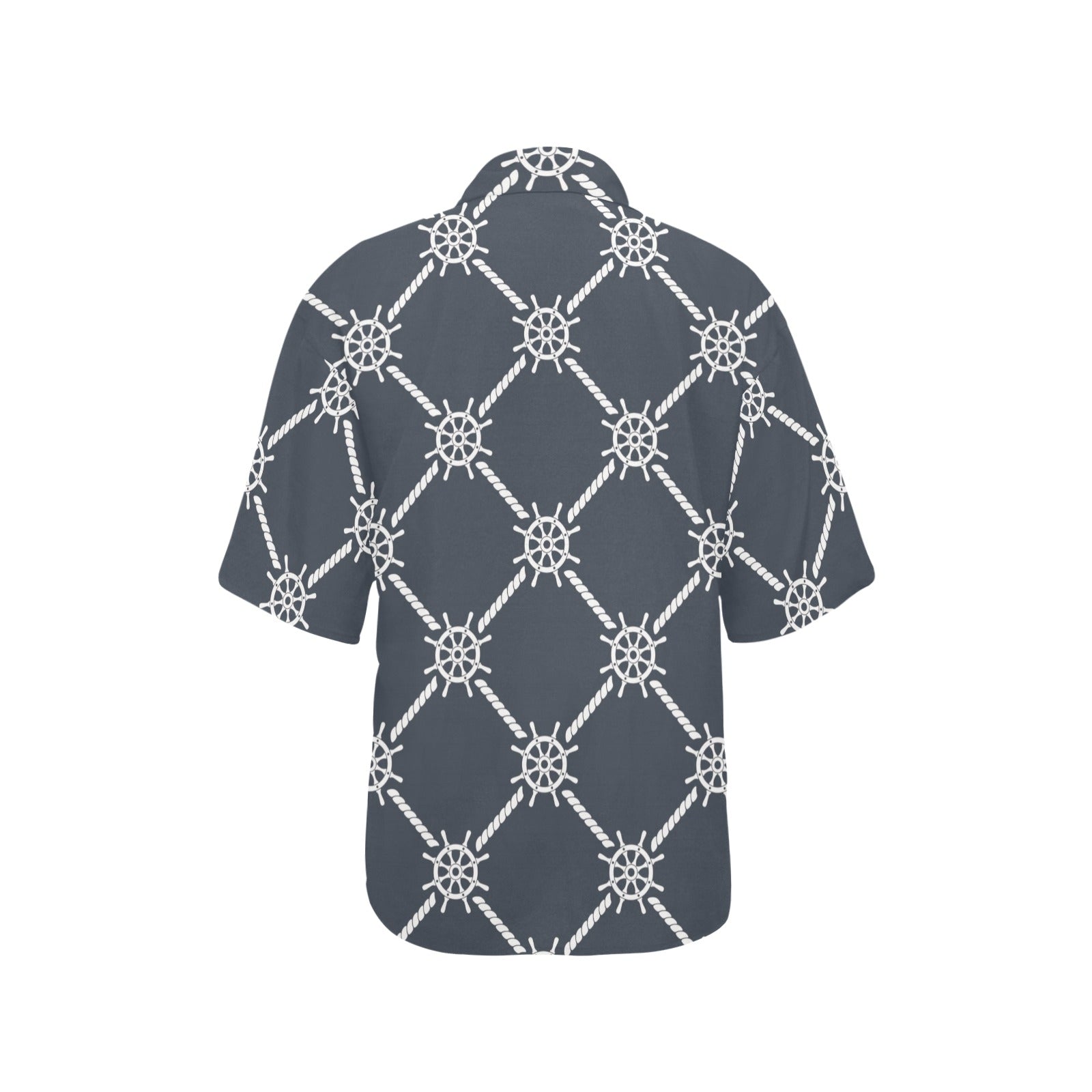 nautical steering wheel rope pattern Women's All Over Print Hawaiian Shirt