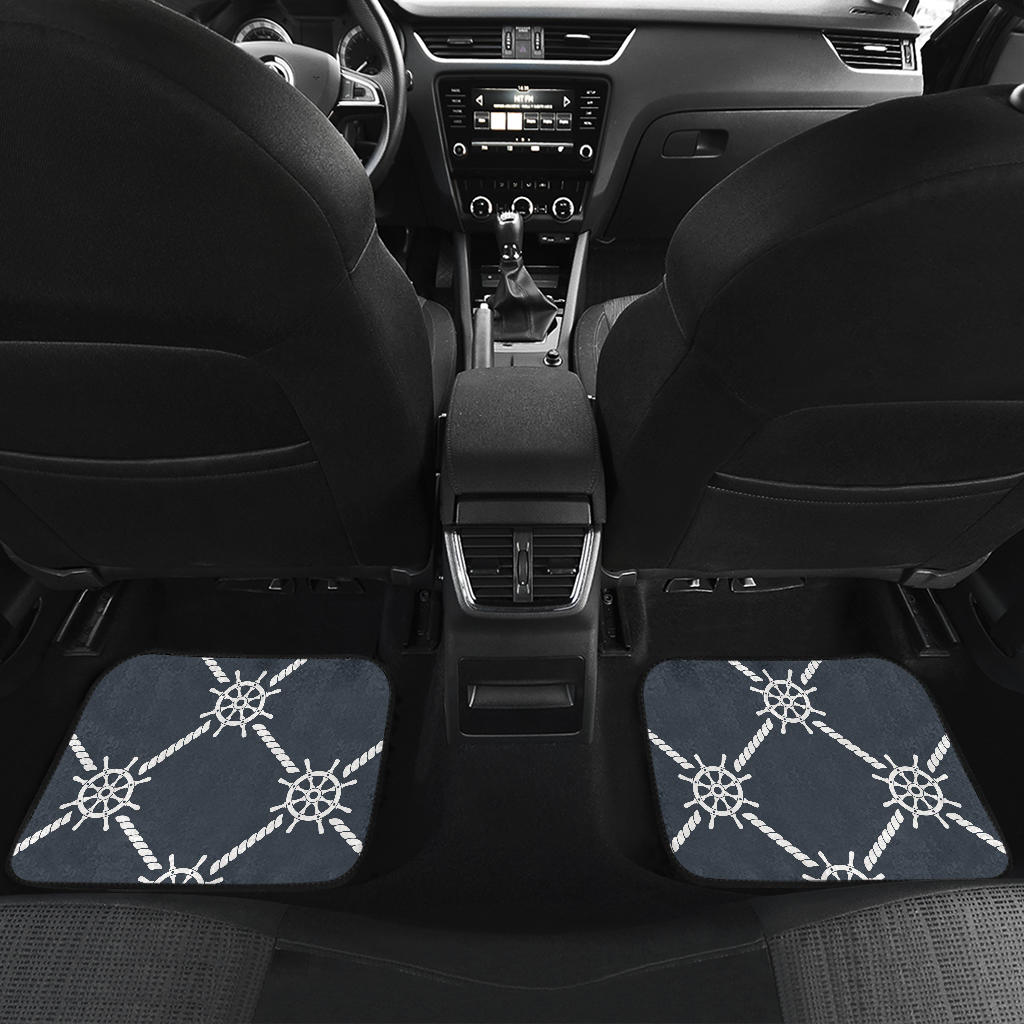 Nautical Steering Wheel Rope Pattern Front And Back Car Mats
