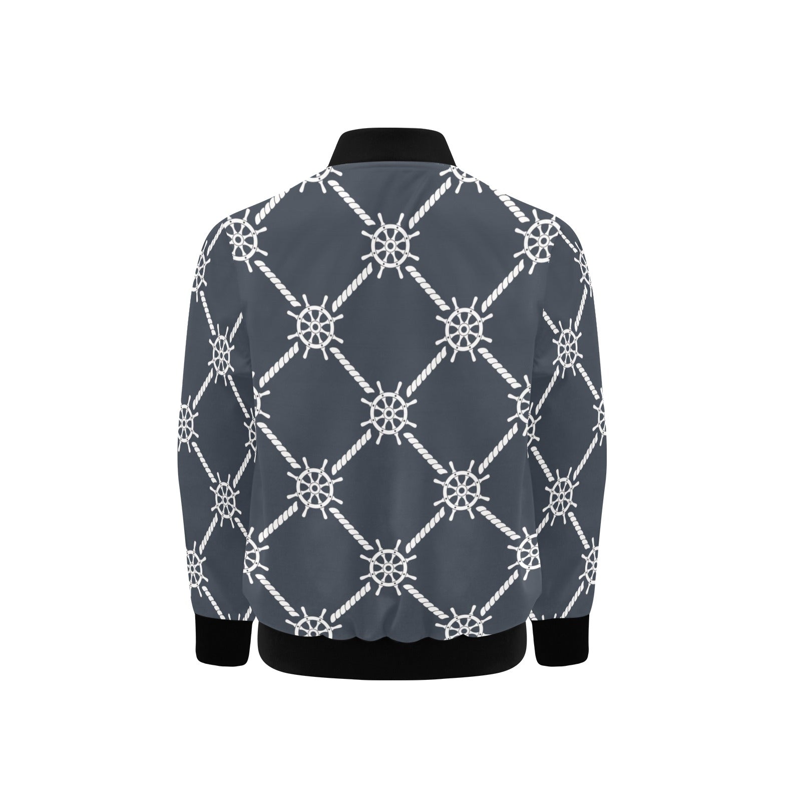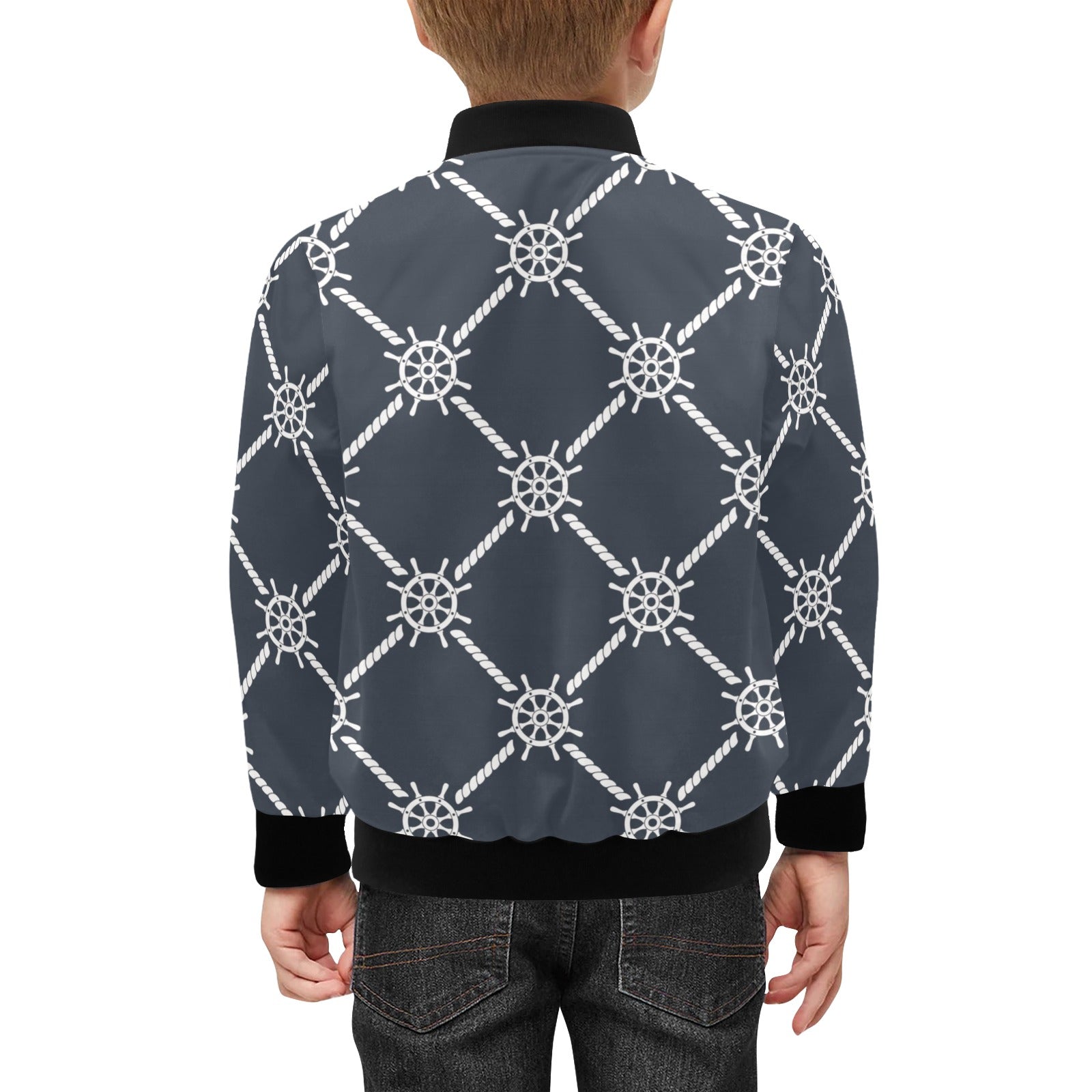 nautical steering wheel rope pattern Kids' Boys' Girls' Bomber Jacket