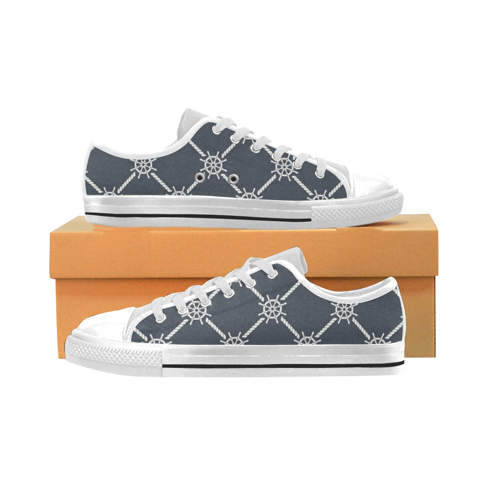 nautical steering wheel rope pattern Men's Low Top Canvas Shoes White