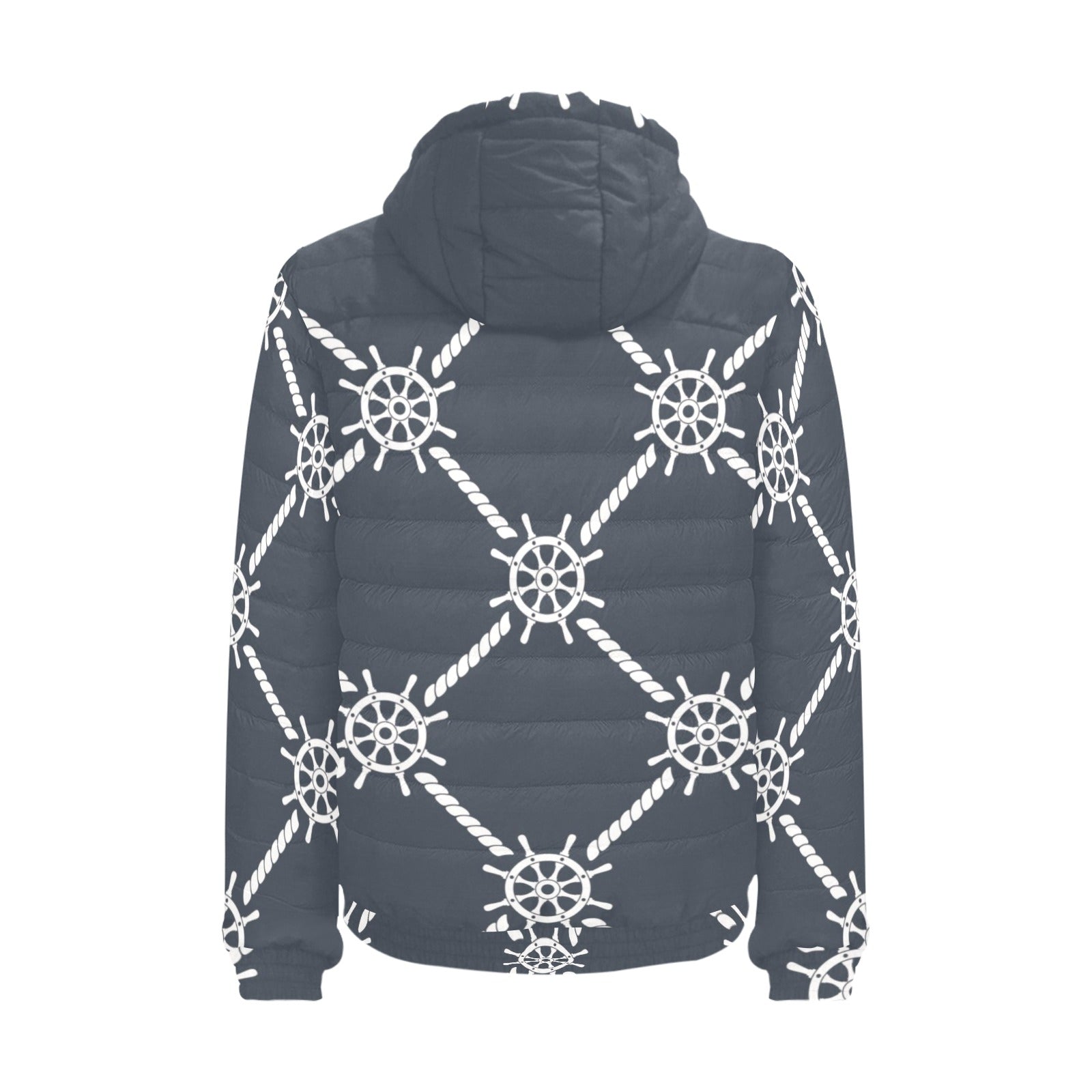 nautical steering wheel rope pattern Men's Padded Hooded Jacket