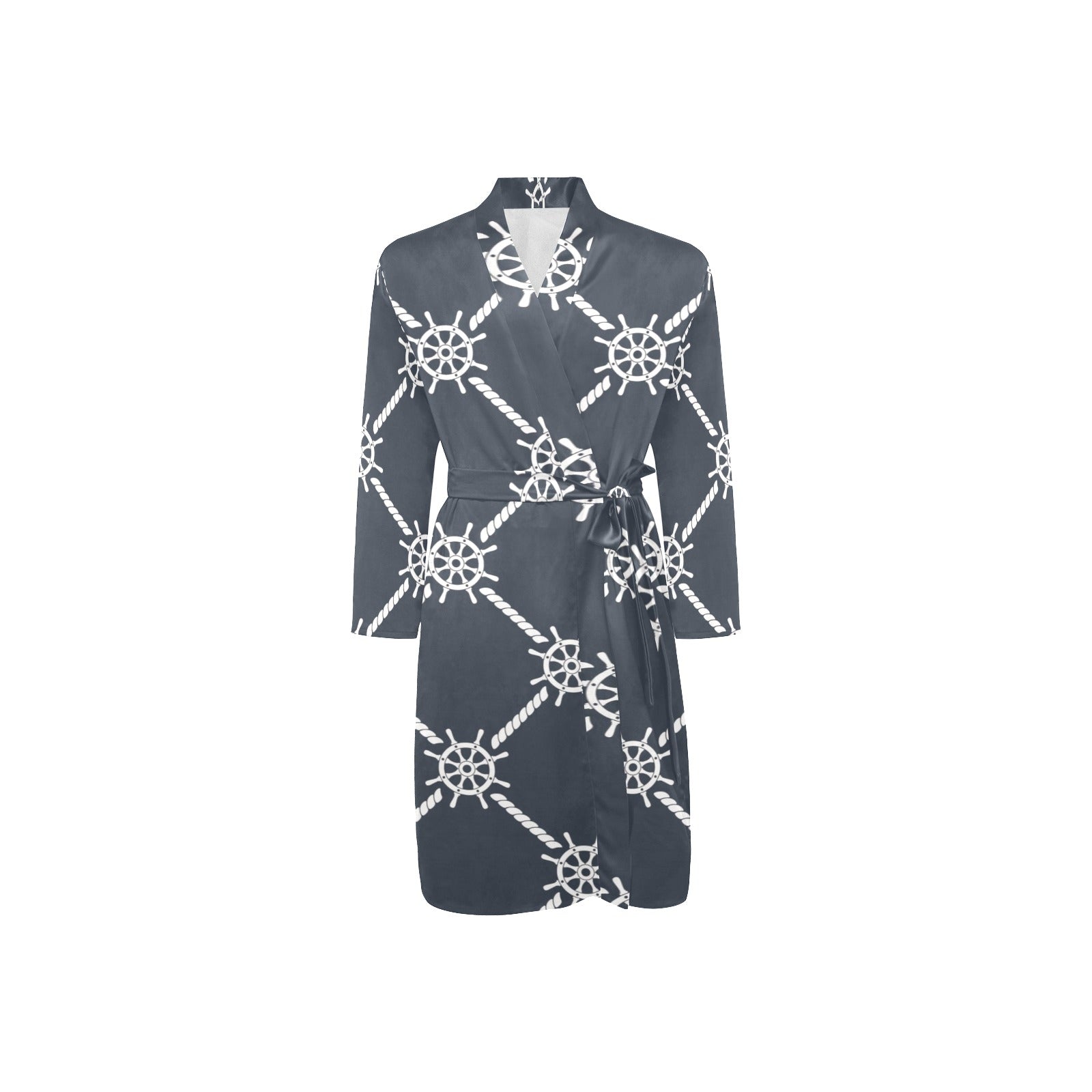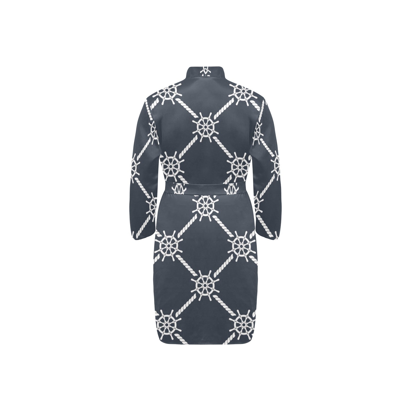 nautical steering wheel rope pattern Men's Long Sleeve Belted Night Robe