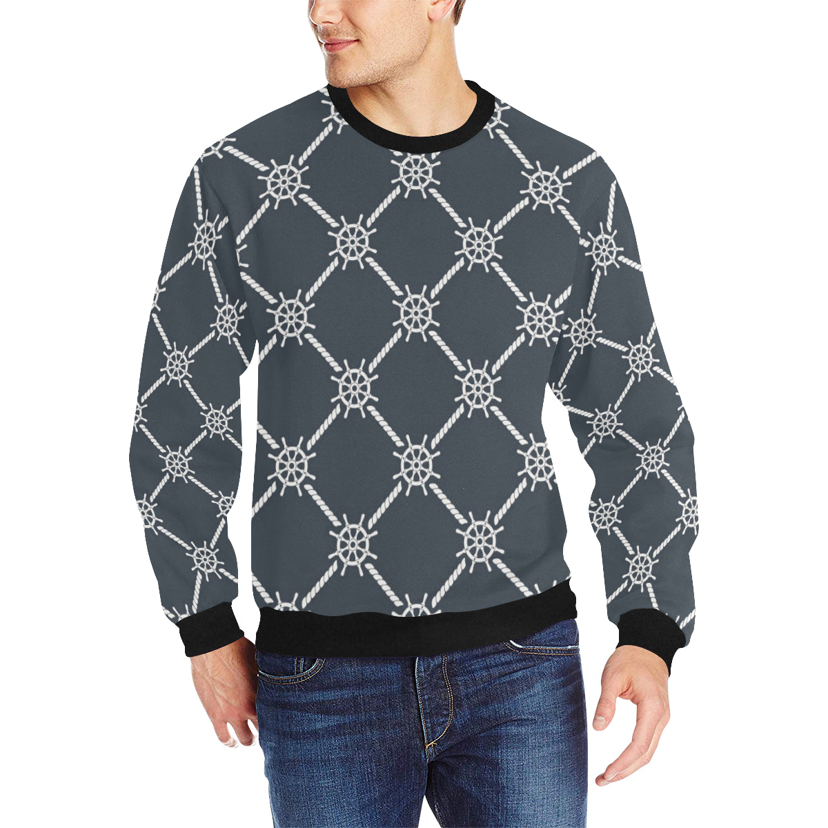 nautical steering wheel rope pattern Men's Crew Neck Sweatshirt is a uniqued design and limited item. It made to order, hand printed, and sewn with love in our factory.