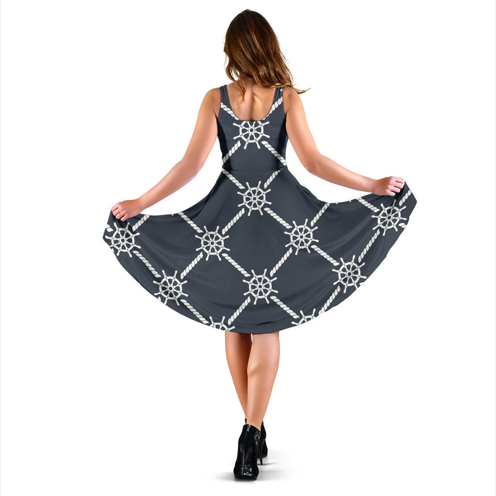 Nautical Steering Wheel Rope Pattern Sleeveless Midi Dress