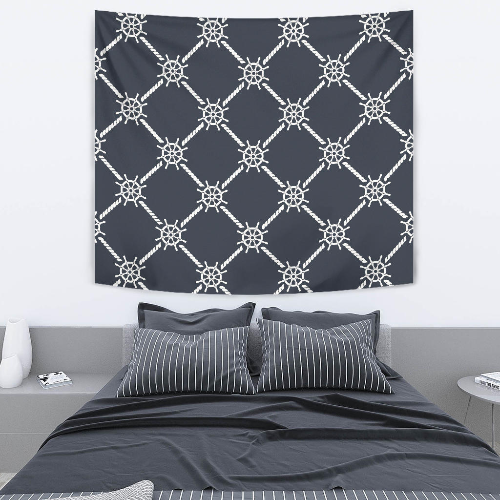 nautical steering wheel rope pattern Tapestry is a uniqued design and limited item. It made to order, hand printed, and sewn with love in our factory.