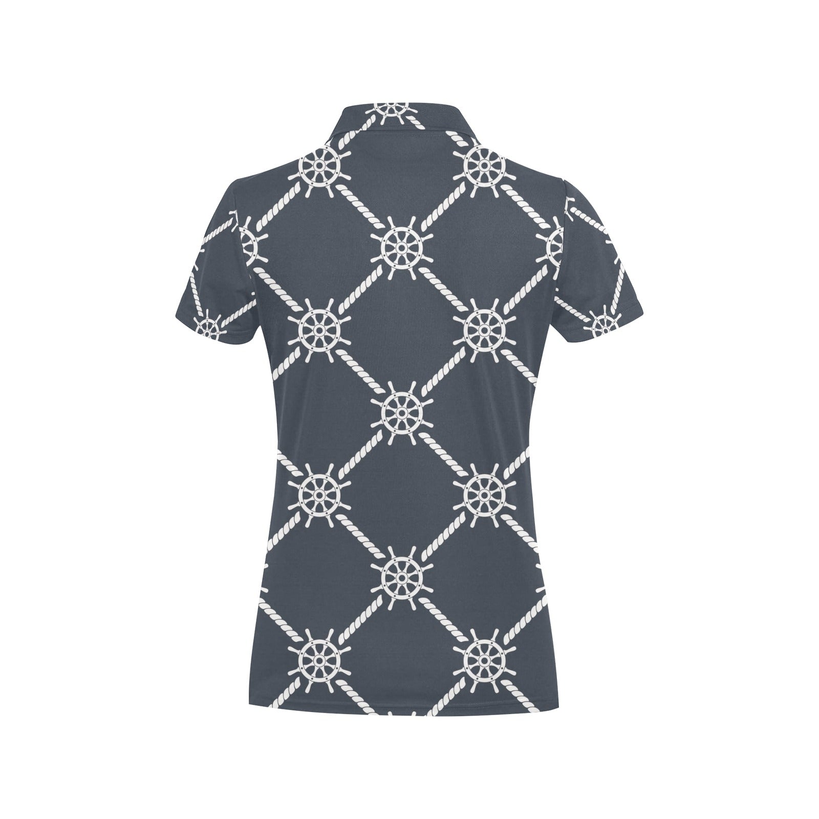 nautical steering wheel rope pattern Women's All Over Print Polo Shirt