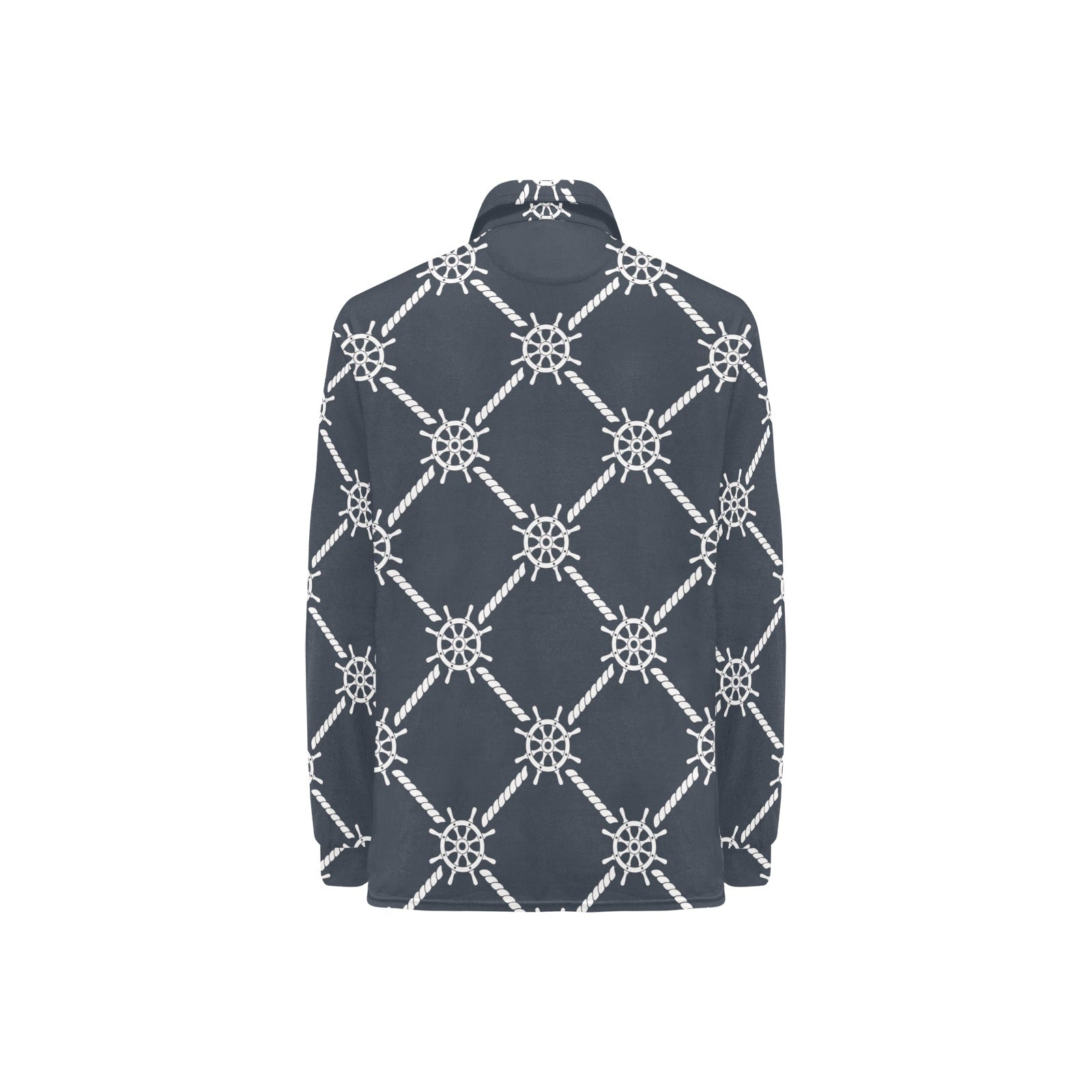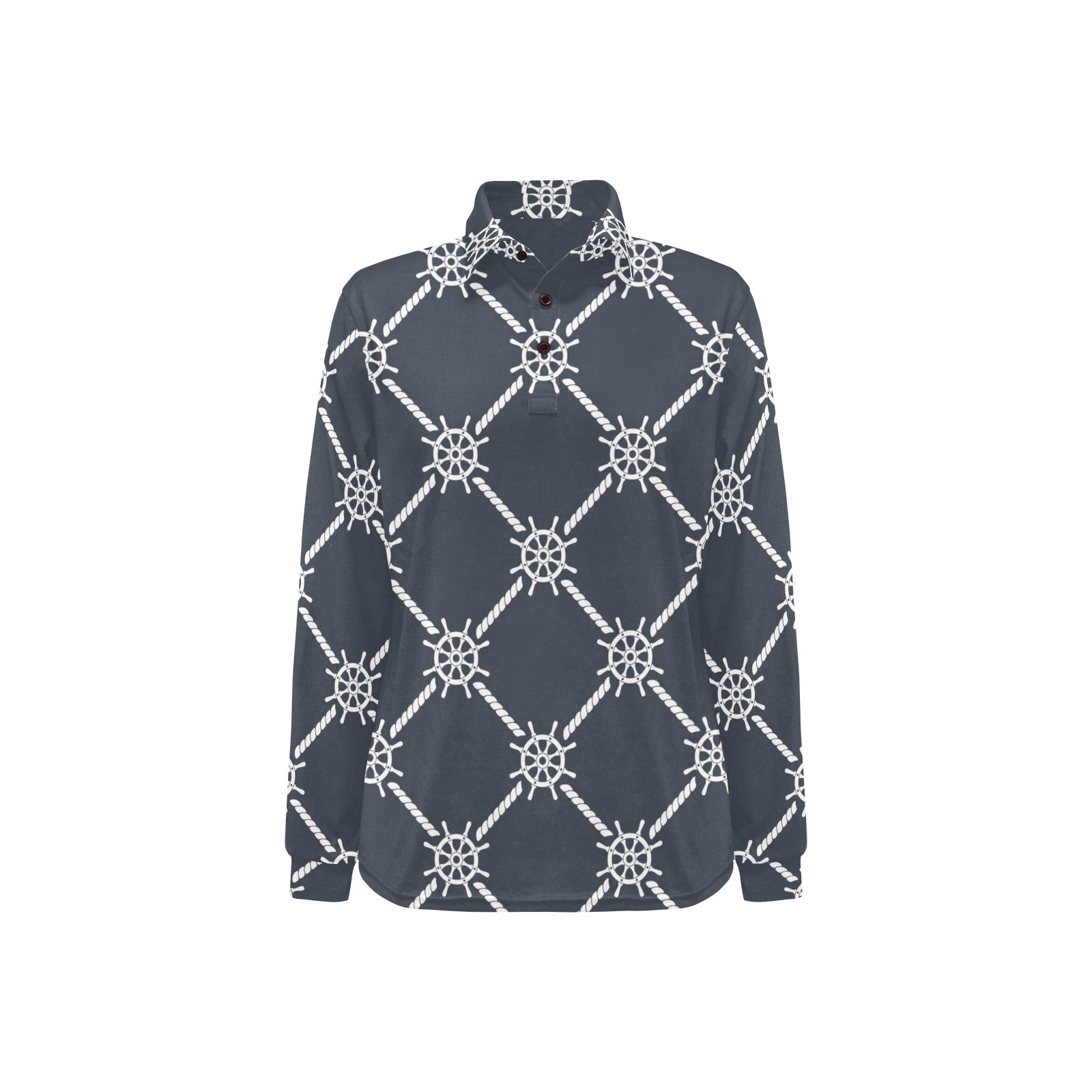 nautical steering wheel rope pattern Women's Long Sleeve Polo Shirt